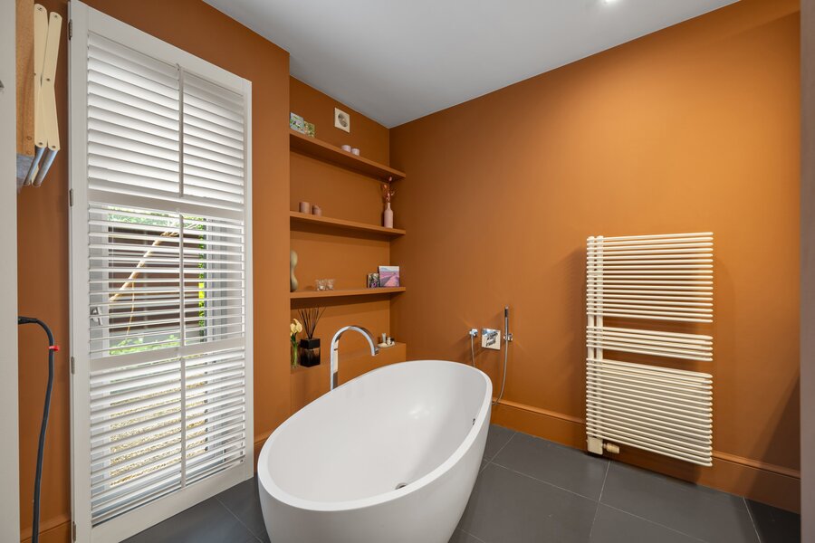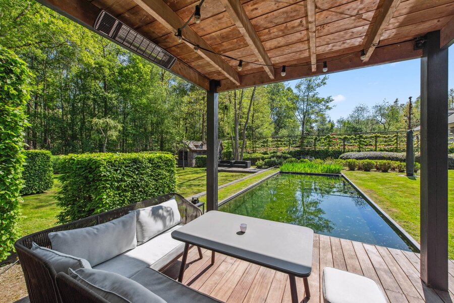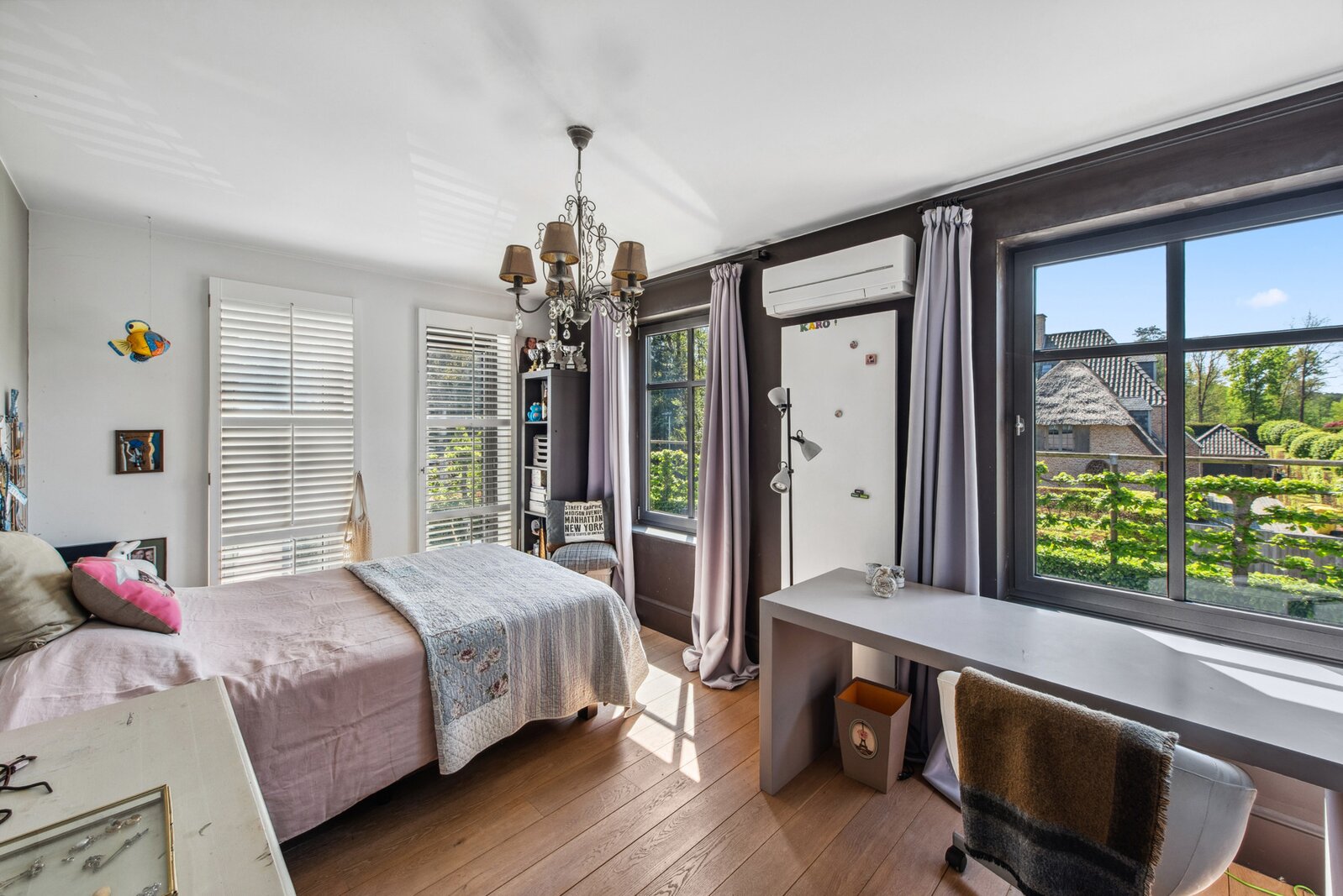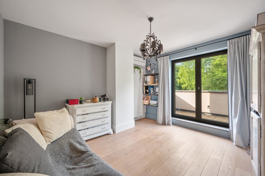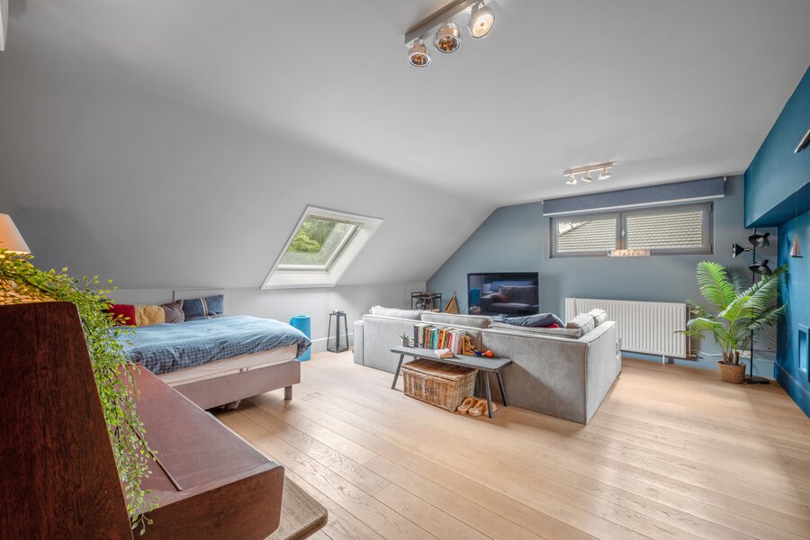 Via een vaste trap bereikt u de zolderverdieping, die volledig is ingericht en perfect dienst kan doen als extra slaapkamer, bureau of hobbyruimte. Aansluitend vindt u hier een royaal dakterras met een prachtig uitzicht op de aangelegde tuin.