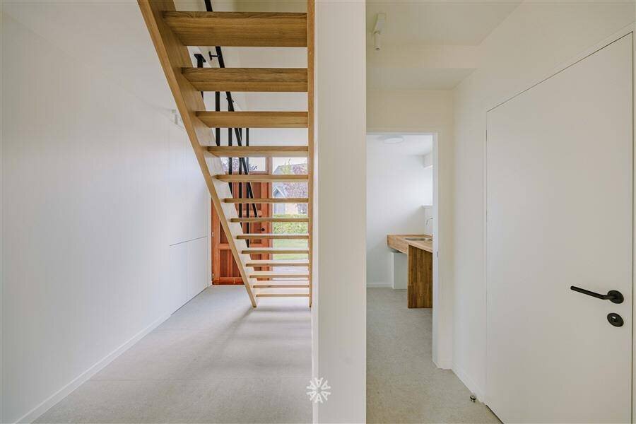 Upon entering, you are welcomed by a spacious entrance hall, with stylish staircase to connect towards the light-filled living space.