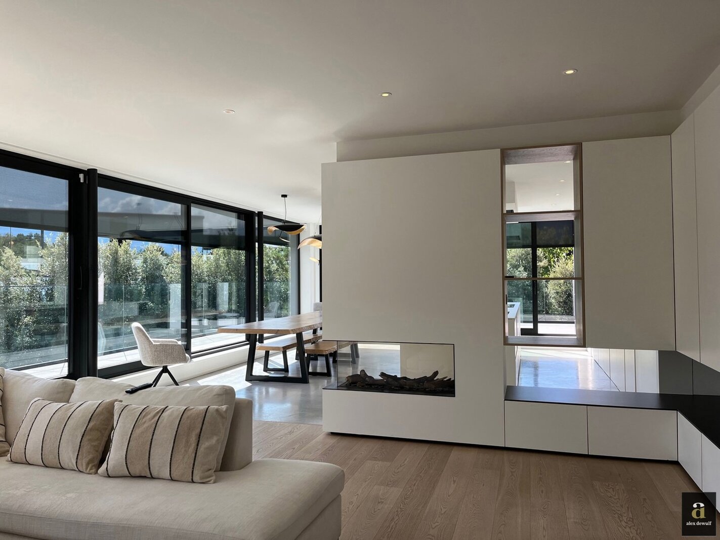 The property is finished with sustainable, high-quality materials, including solar panels, sun protection, alarm system, heat pump, water softener, etc.