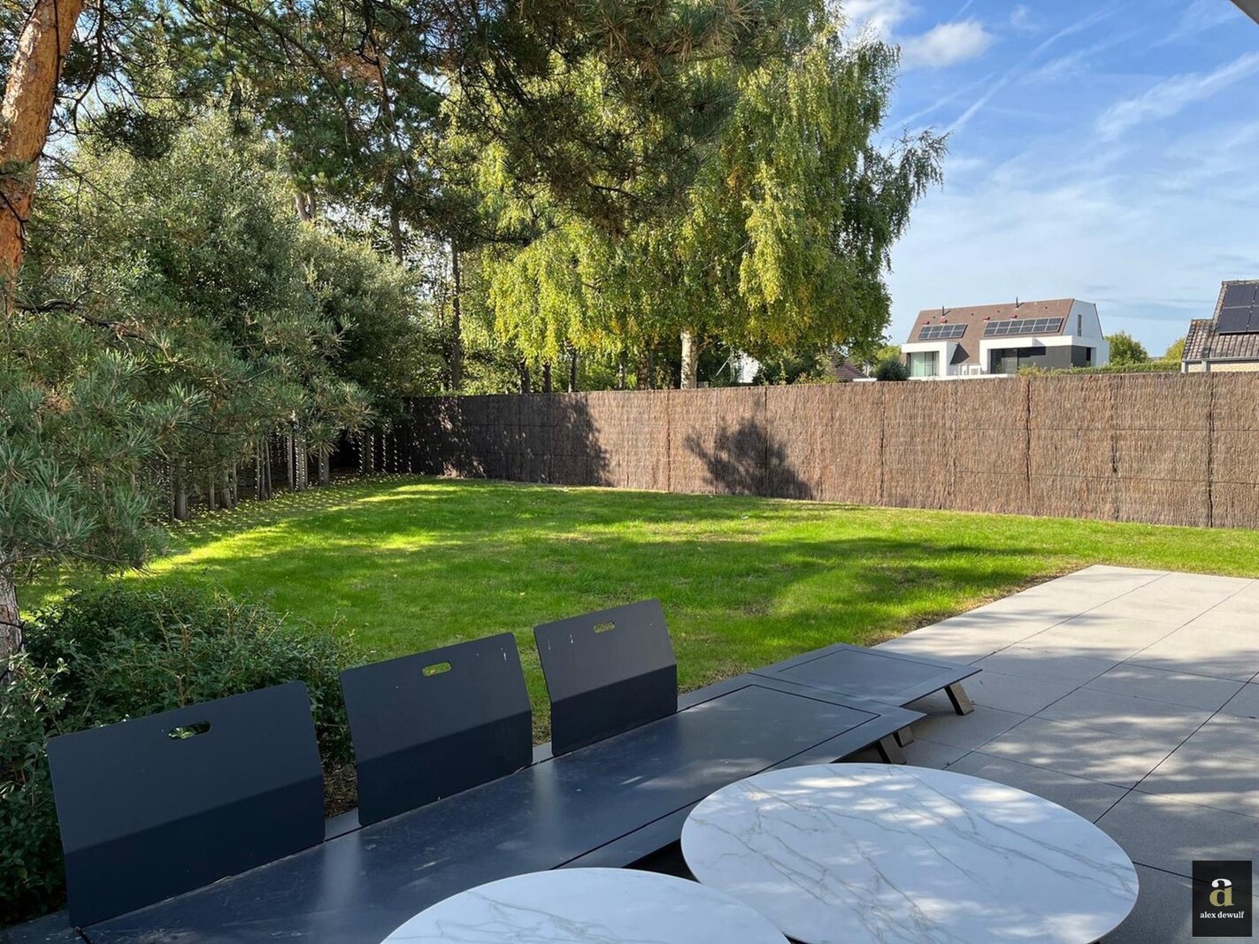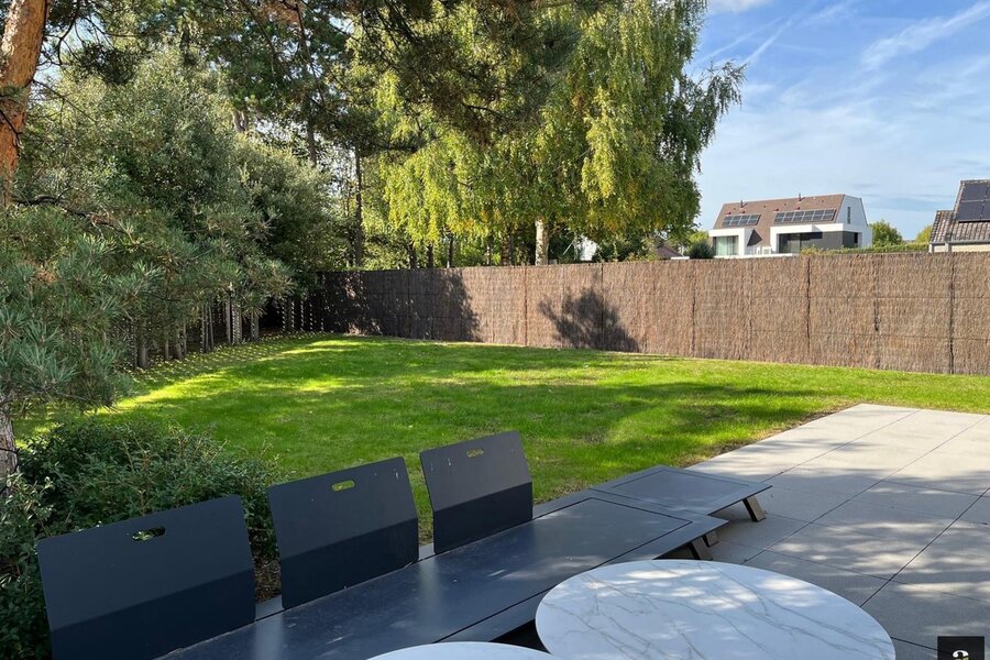 Recent and energy-efficient home set on a 732 m² plot, located in a quiet and central residential area of Knokke-Heist. Layout: entrance hall with cloakroom and guest toilet. Two spacious bedrooms with en-suite shower rooms, office space and built-in wardrobes. Master suite with dressing room and bathroom (bathtub, shower, toilet and double washbasin). All bedrooms enjoy views and direct access to the south-west facing garden and terraces. Practical laundry room. Cellar.