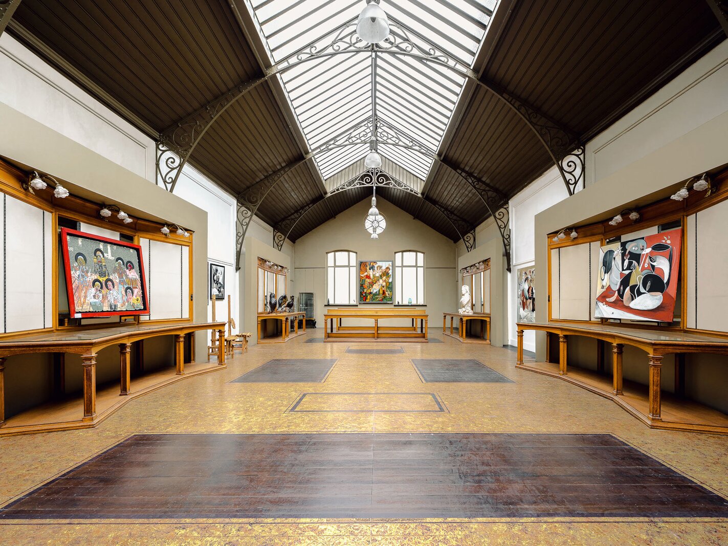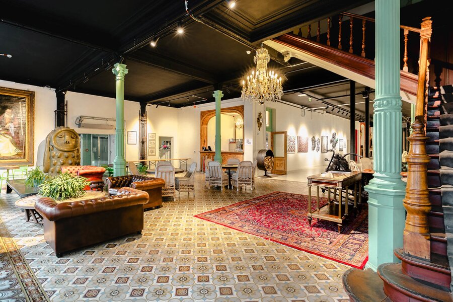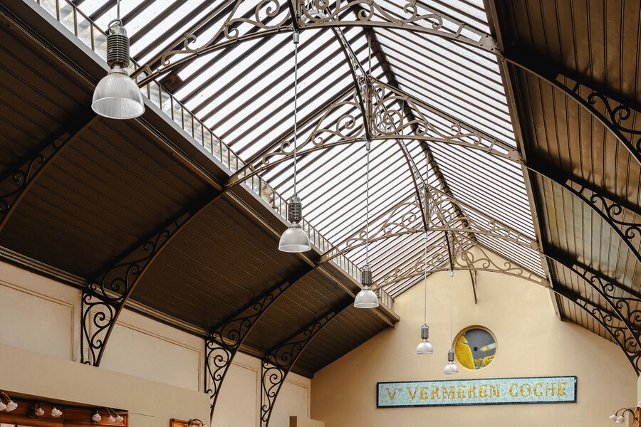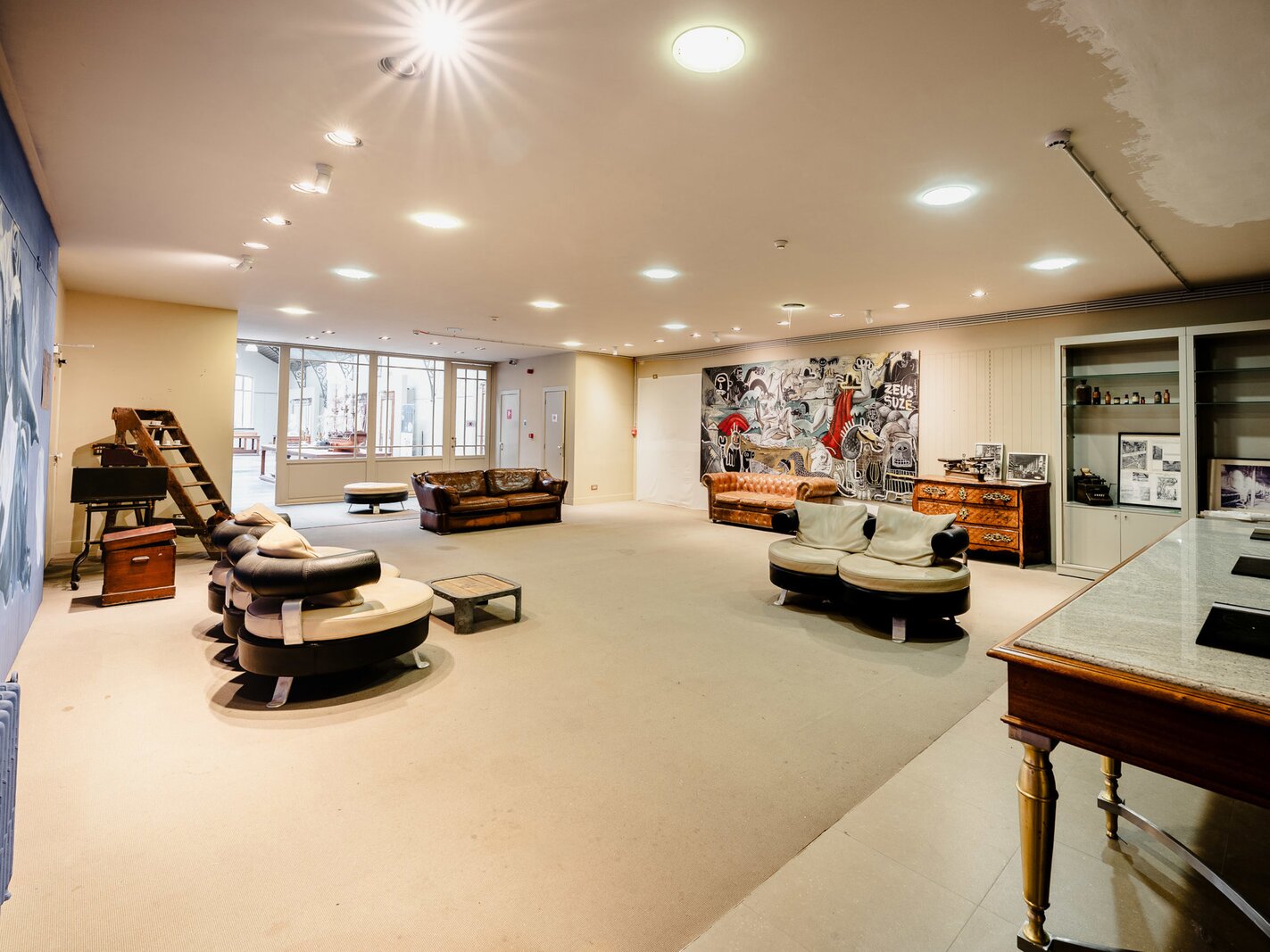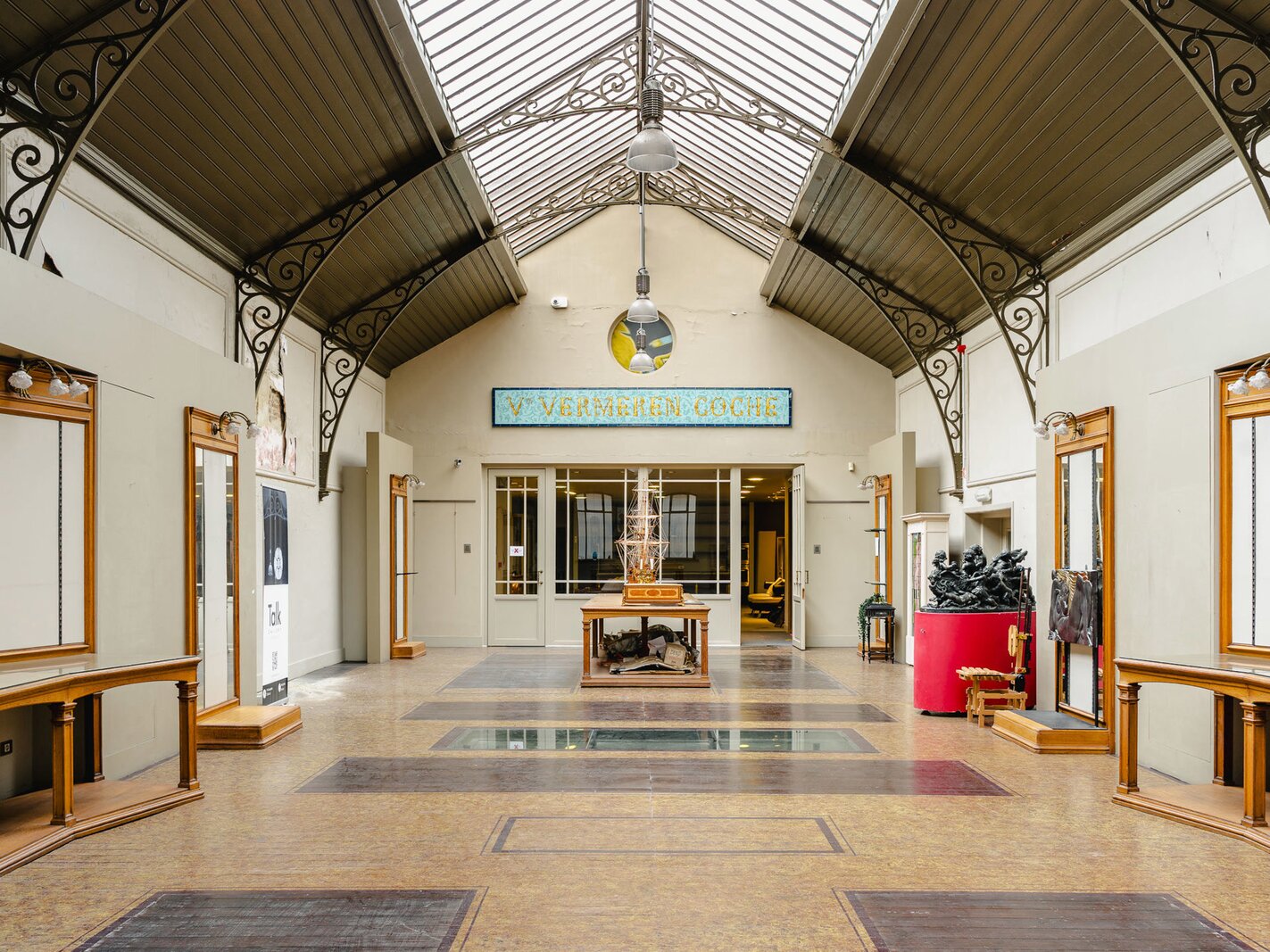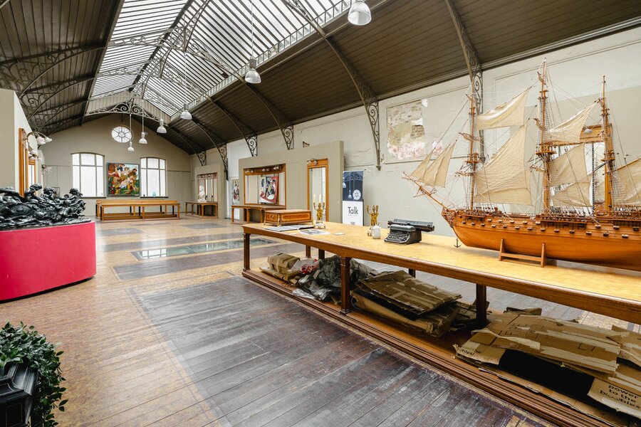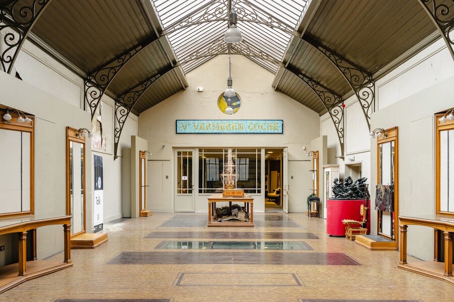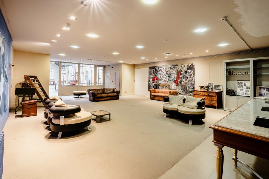 Completely renovated and restored, the ground floor houses an impressive reception room and bar leading to the gallery, complemented by a professional kitchen suitable for caterers. The first floor is organised around a spectacular glass roof, the former exhibition hall, which is the centrepiece of the building, offering bright and modular spaces. A residential area, in need of renovation, and attic space on the second floor complete the property and offer additional development potential. The generous ceiling heights reinforce the elegance and grandeur of the spaces.