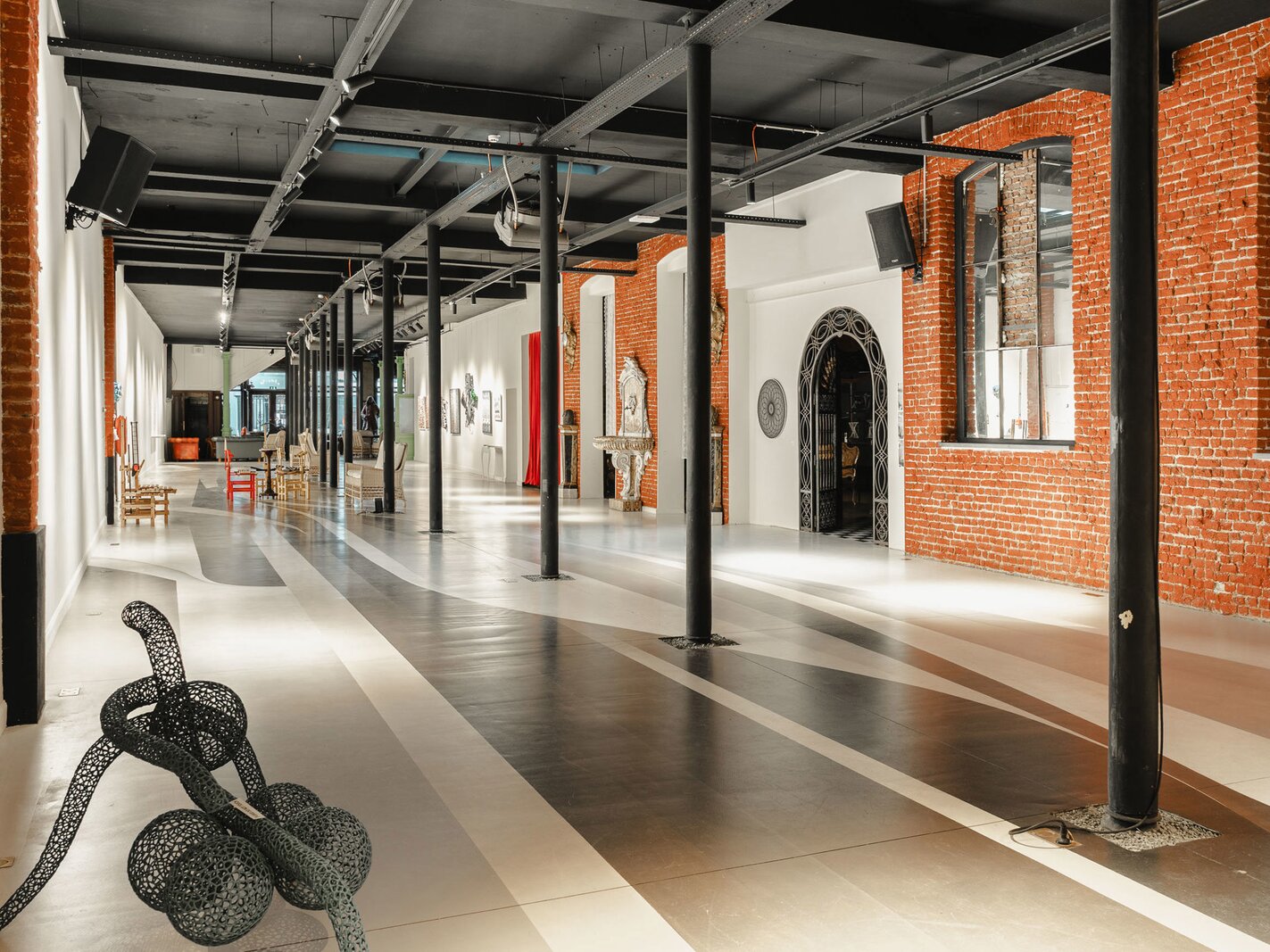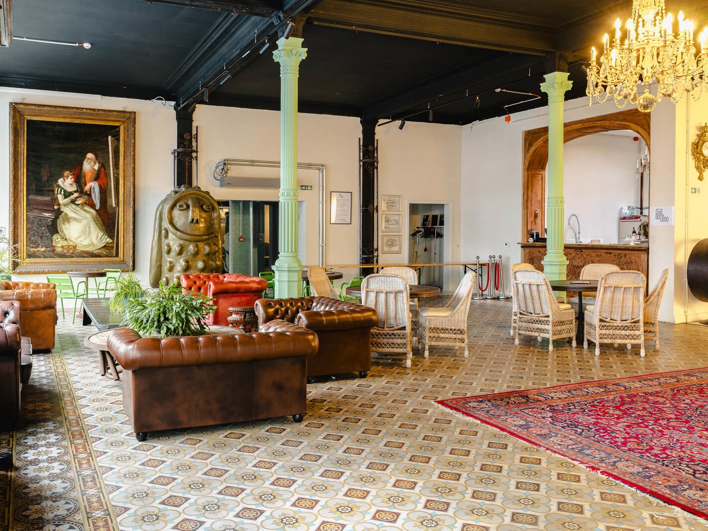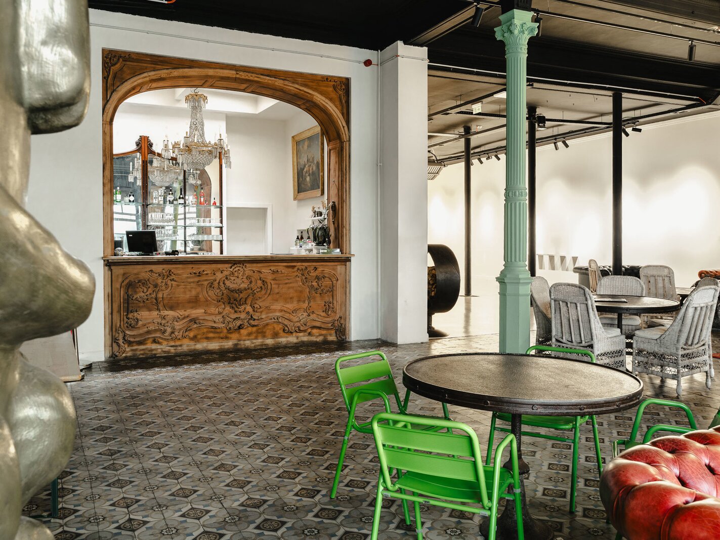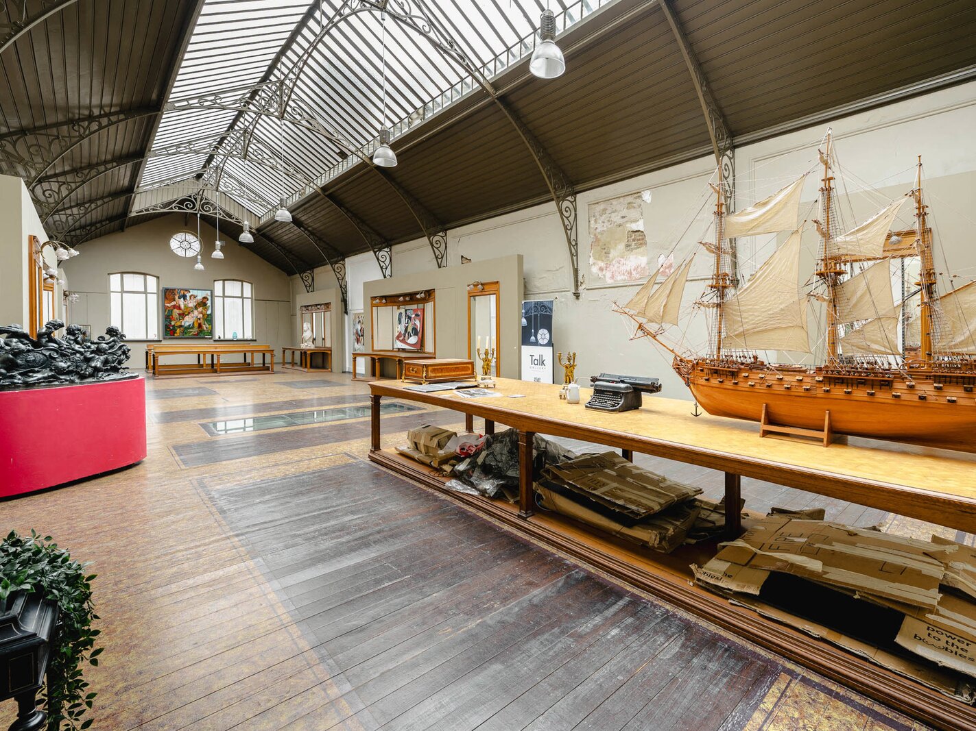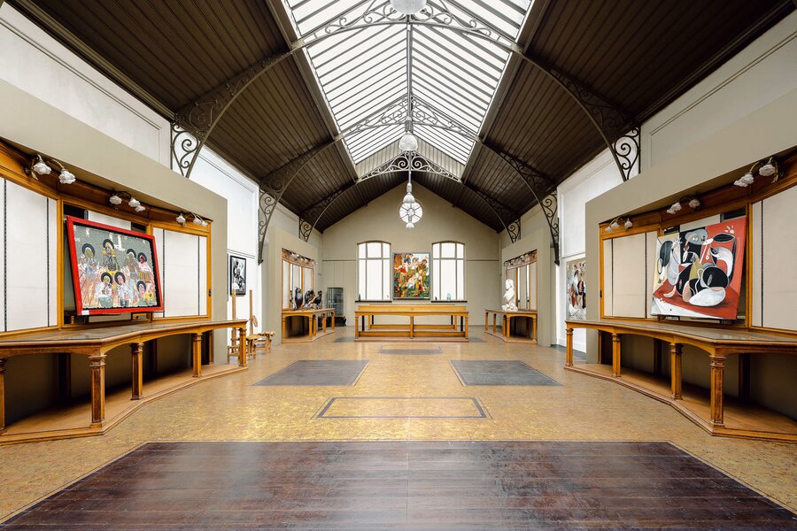 Completely renovated and restored, the ground floor houses an impressive reception room and bar leading to the gallery, complemented by a professional kitchen suitable for caterers. The first floor is organised around a spectacular glass roof, the former exhibition hall, which is the centrepiece of the building, offering bright and modular spaces. A residential area, in need of renovation, and attic space on the second floor complete the property and offer additional development potential. The generous ceiling heights reinforce the elegance and grandeur of the spaces.
