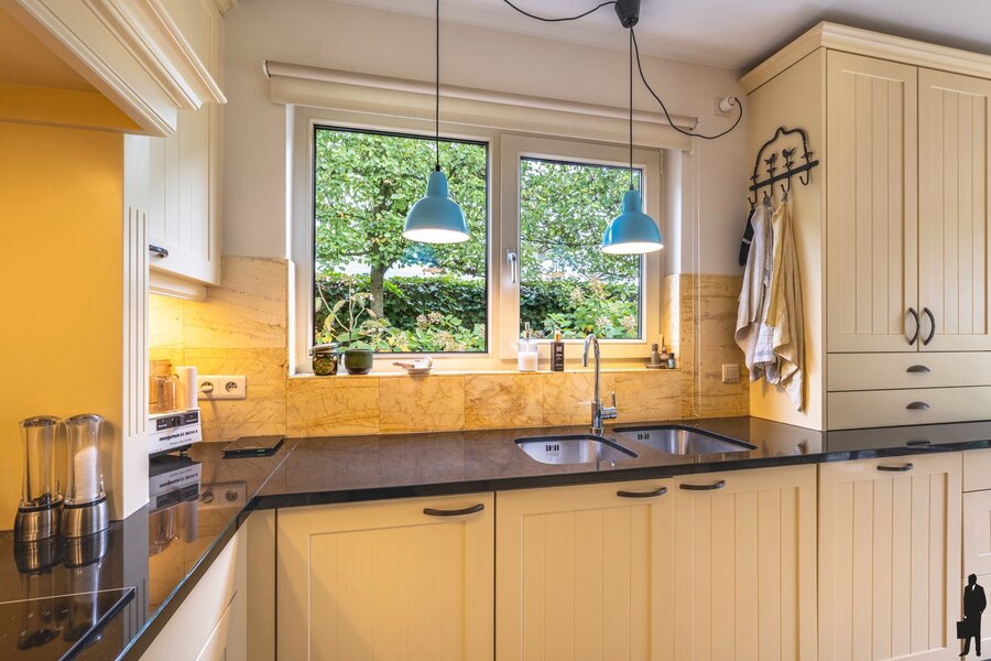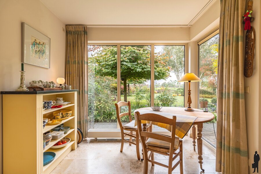 In de keuken is er ruimte voor een eettafel waarvan u kan genieten van uitzicht over de tuin.