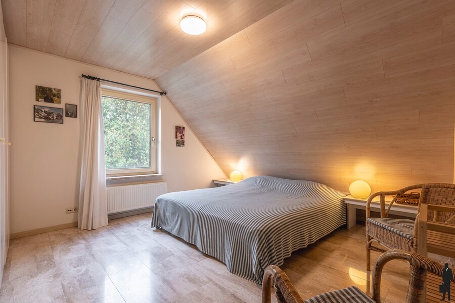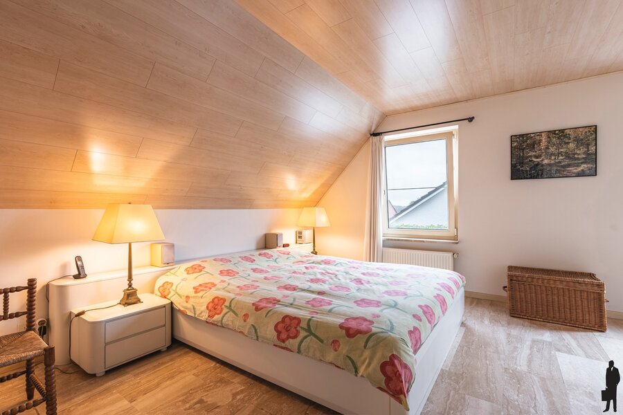 De vaste trap in de hal brengt u naar de eerste verdieping. De eerste verdieping is voorzien van een natuursteen vloer.