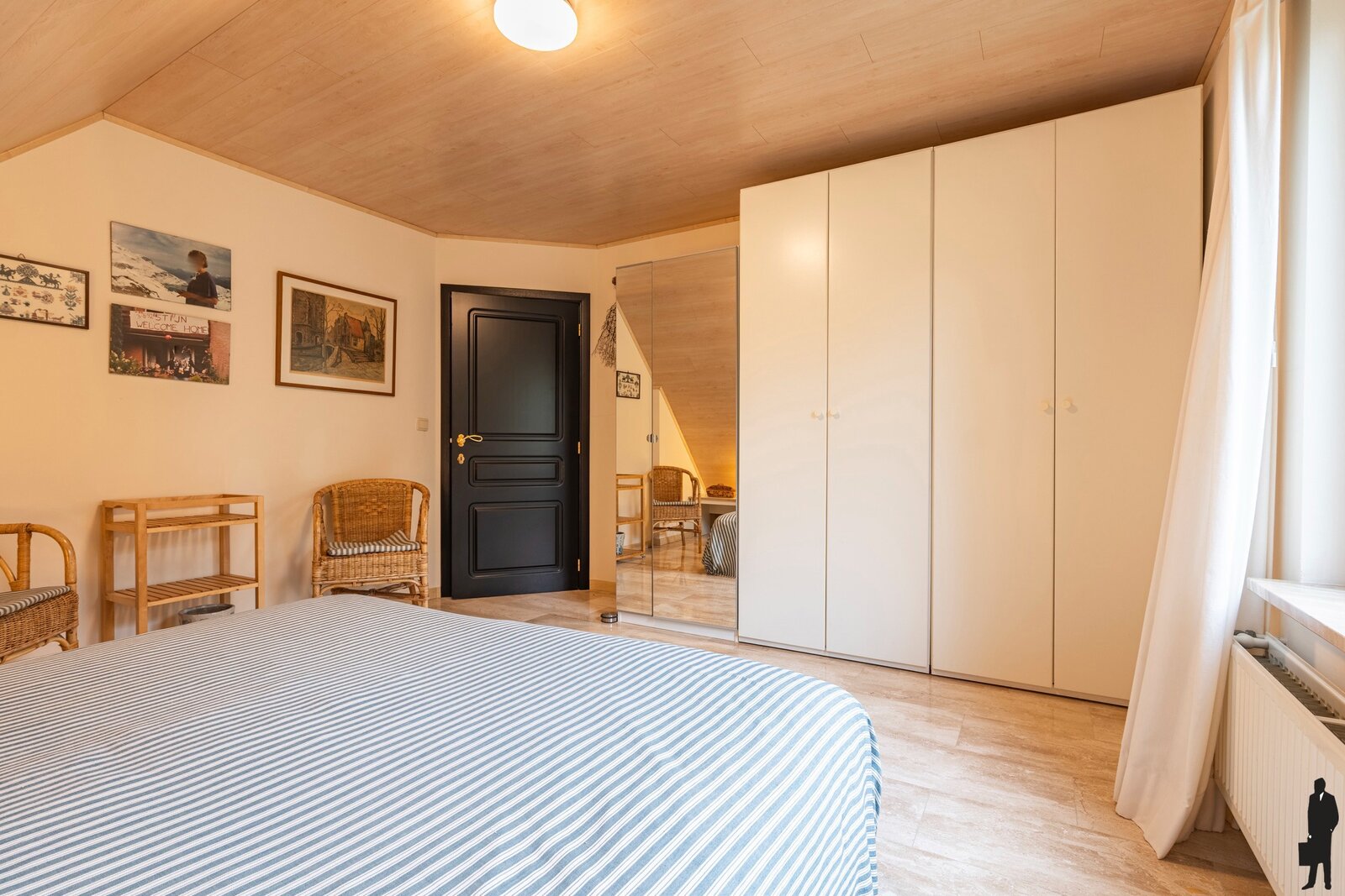 De overloop geeft toegang tot de drie ruime slaapkamers en een dressing.