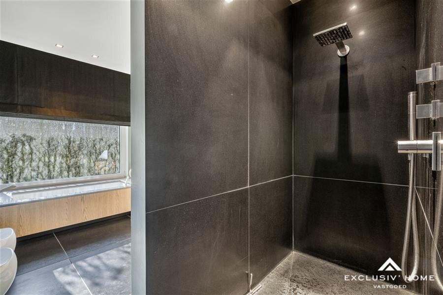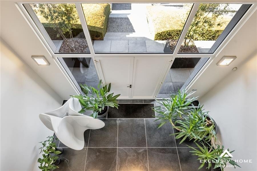 Only the highest-quality materials and systems have been used. All comfort and safety features have been expertly integrated into the stylish interior design, which is both luxurious and modern. Each room has been thoughtfully designed, creating a unique, spacious, and peaceful living experience. The overall concept combines an abundance of light, large glass windows, and open interior spaces with optimal insulation and energy efficiency. A striking feature is the closed front façade, which stands in sharp contrast to the open rear façade with large glass windows. These large windows and perspectives have been carefully designed to enhance the interior/exterior flow and maximize natural light.