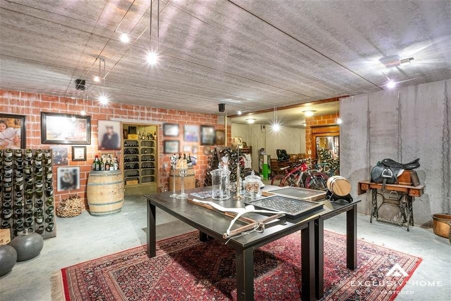 The first floor comprises 4 bedrooms, a separate bathroom with a steam shower, and an attic for storage. The house is partially basemented, featuring a wine cellar and tasting room, storage space, and a garage for 2 cars.