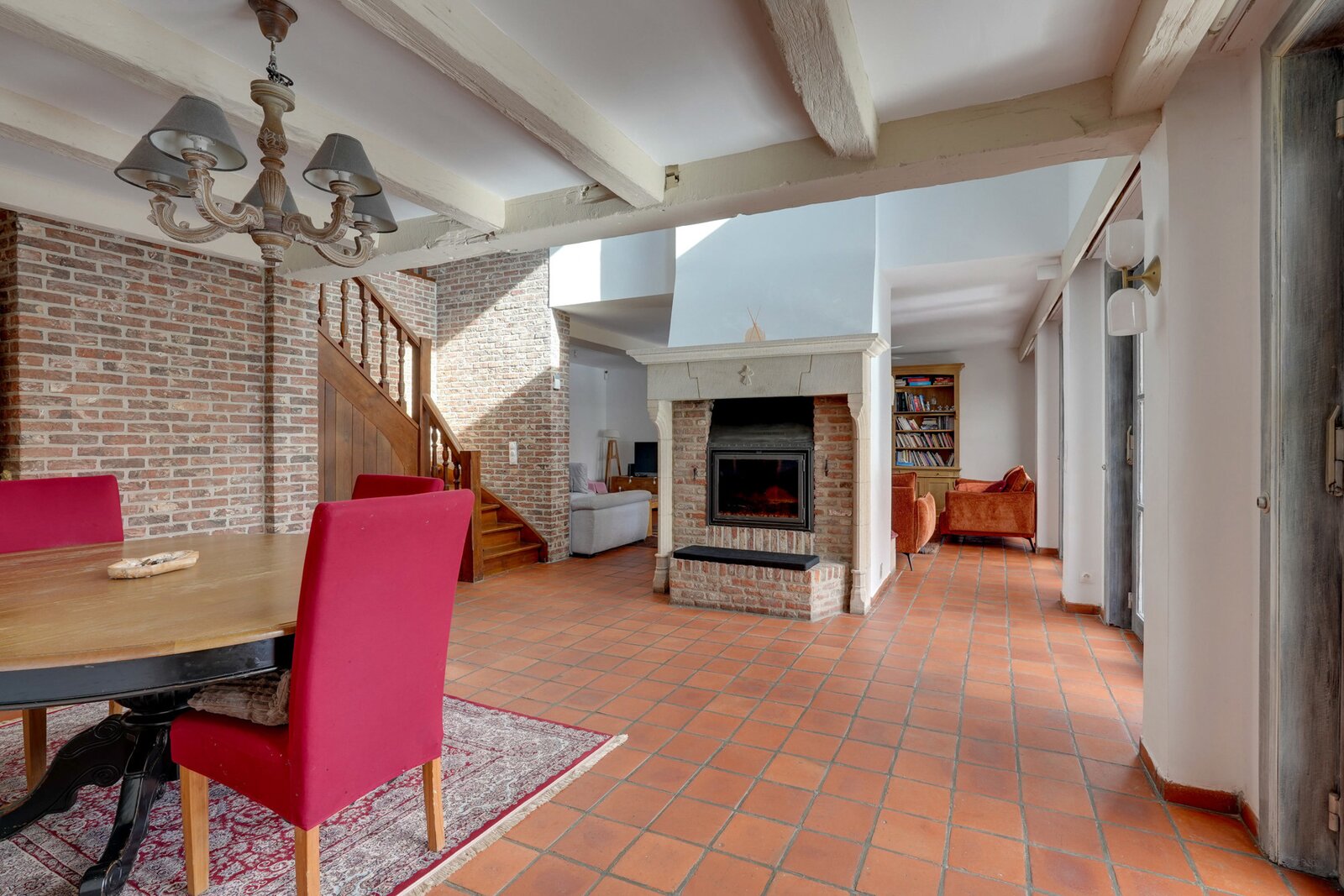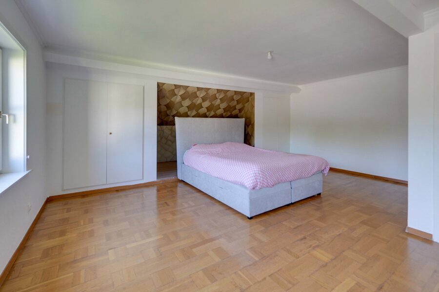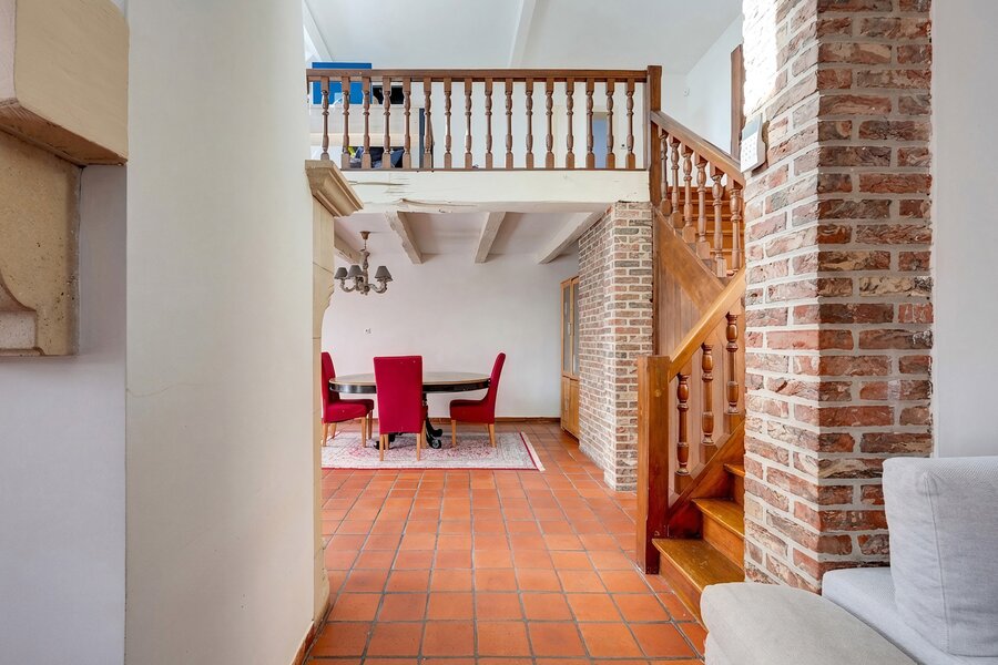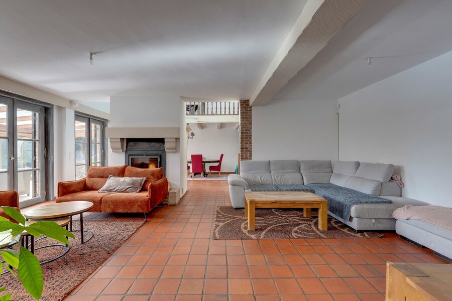 RARE in this area, very nice opportunity! Wooden double-glazed frames, tiled flooring on the ground floor, parquet flooring upstairs, electric underfloor heating + ceiling heating, double-sided wood-burning insert in the living room, alarm system, 3 rainwater tanks (+/- 30,000L in total) connected to all sanitary installations of the house, TOP location! IMPRESSIVE VOLUMES!