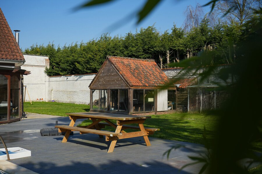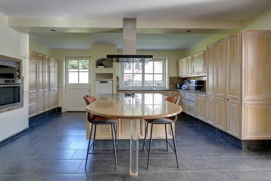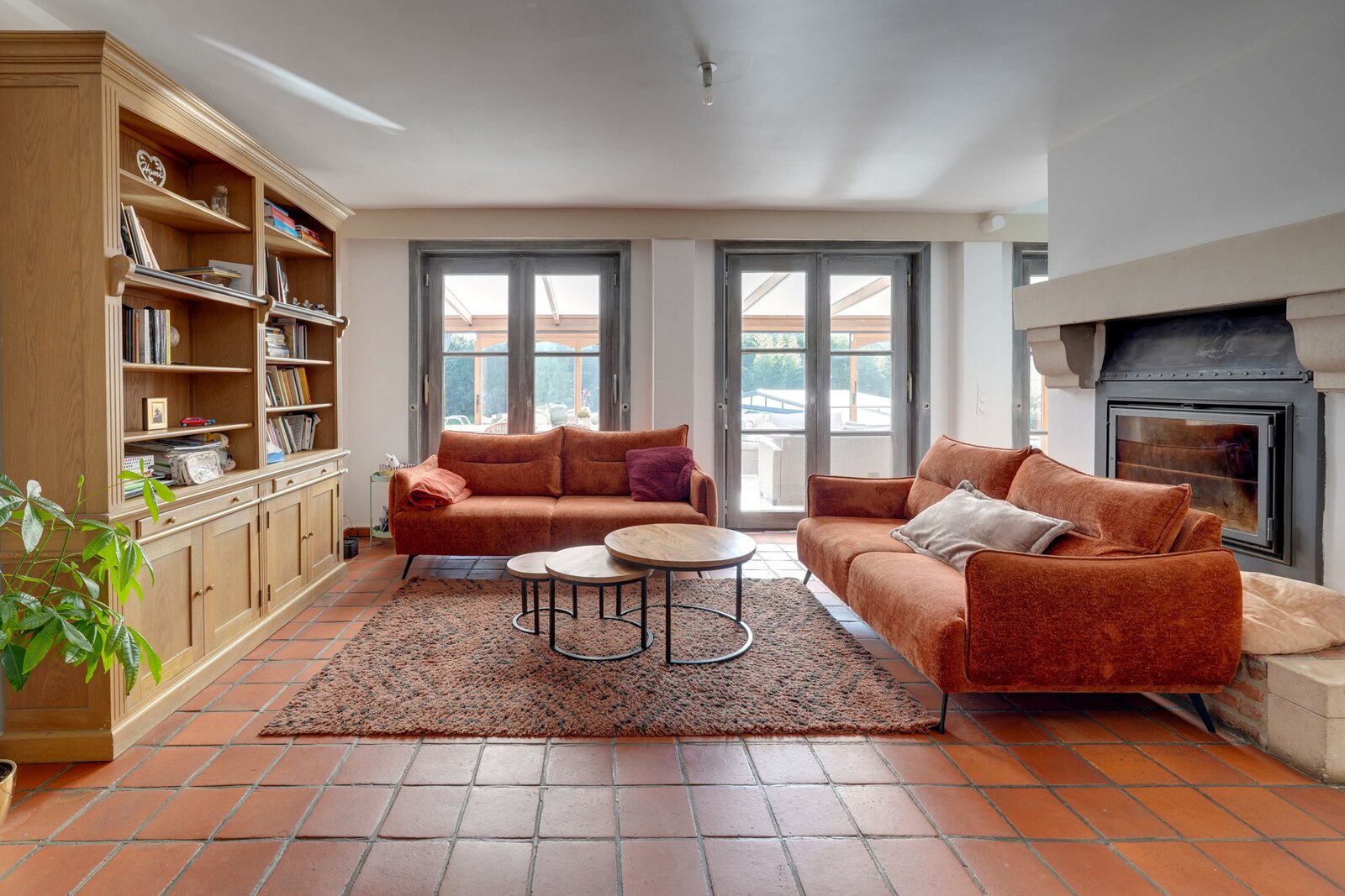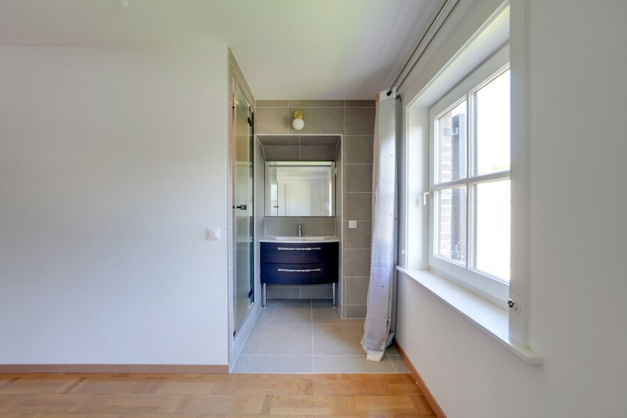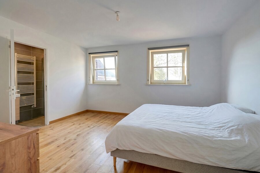 RARE in this area, very nice opportunity! Wooden double-glazed frames, tiled flooring on the ground floor, parquet flooring upstairs, electric underfloor heating + ceiling heating, double-sided wood-burning insert in the living room, alarm system, 3 rainwater tanks (+/- 30,000L in total) connected to all sanitary installations of the house, TOP location! IMPRESSIVE VOLUMES!