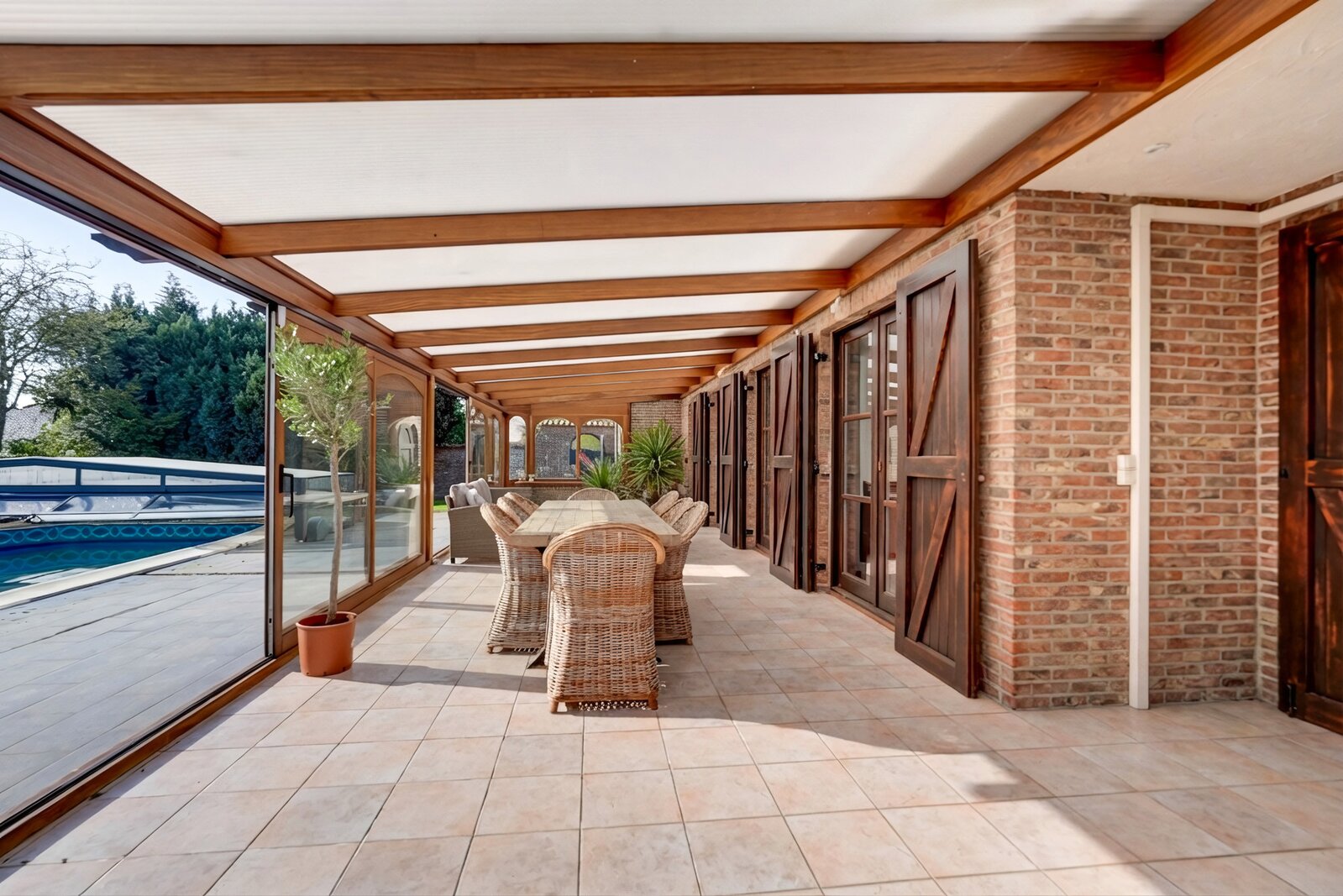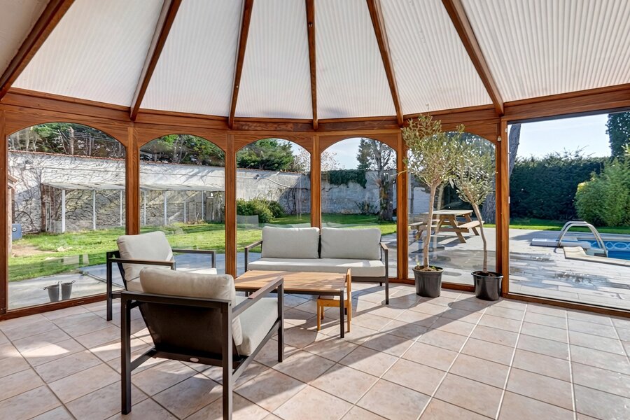 Exterior: A convivial terrace, a heated and covered swimming pool, as well as a magnificent fenced garden, perfectly oriented southeast and not overlooked. A storage/workshop and a large parking area at the front complete the property.