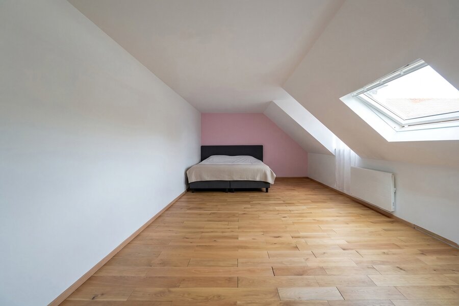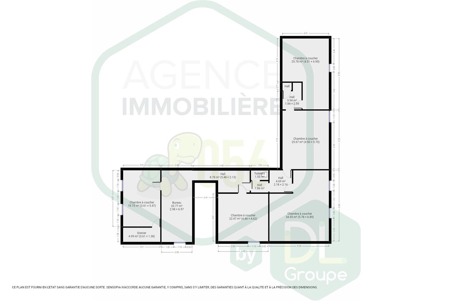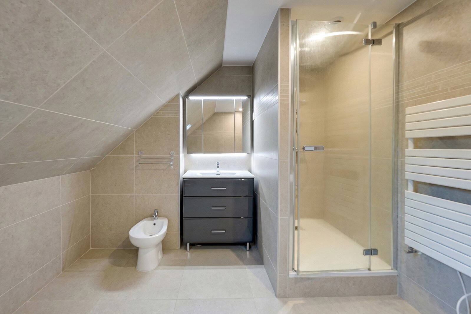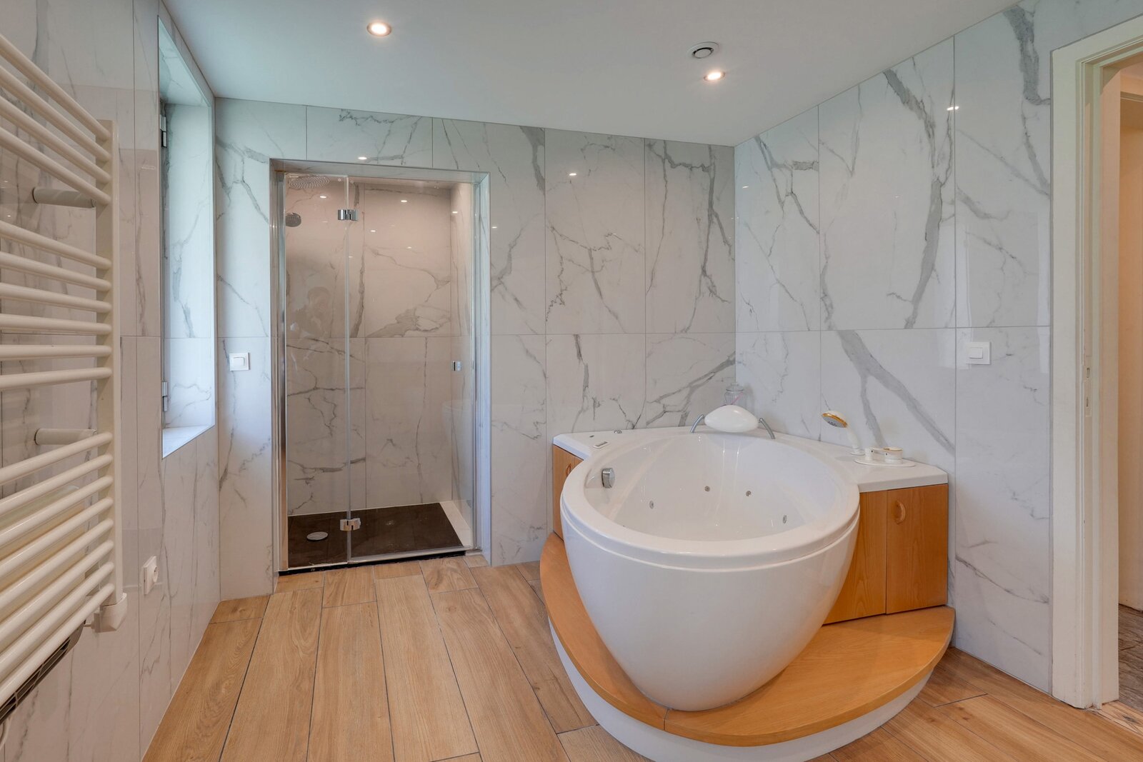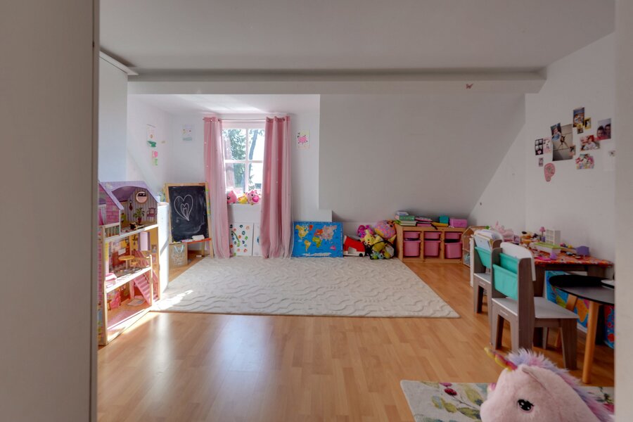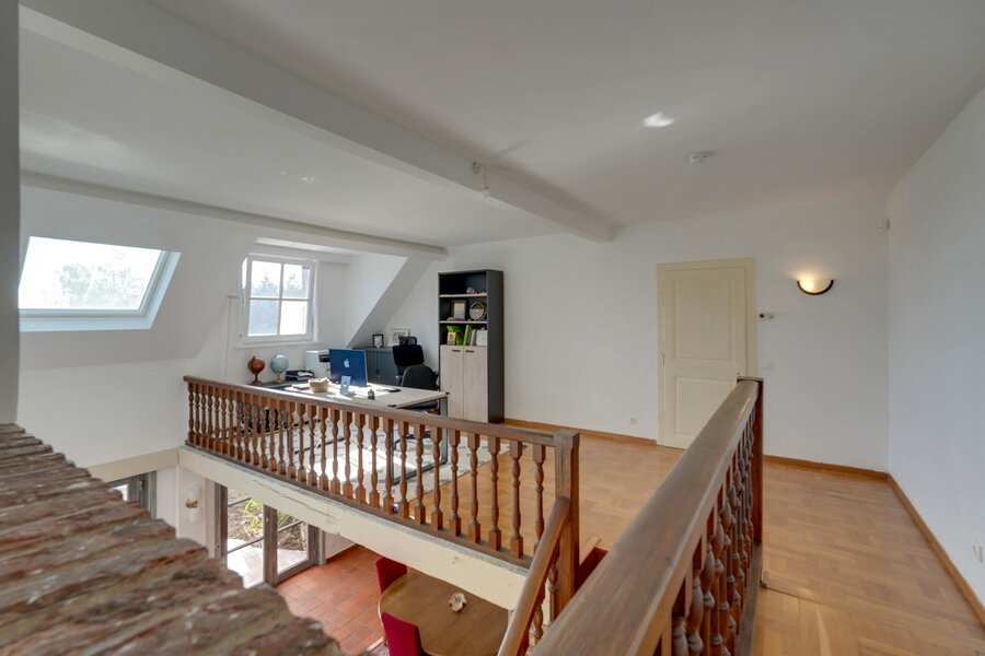 Upstairs: A large night hall of approximately 20 m² with office space leads to 5 large bedrooms with comfortable surfaces (35 m², 26 m², 26 m², 23 m² and 20 m²) as well as 3 bathrooms. The second floor hosts a large attic insulated at floor level, offering great potential for further development.