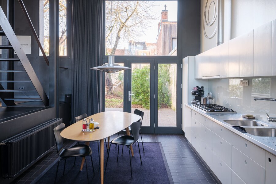Unique in scale and conception: two townhouses were brought together into one coherent whole. Carefully considered volumes and thoughtfully positioned window openings create a refined interplay between interior and exterior, engaging with the surrounding environment.