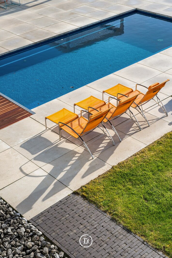 De tuin vormt een verlengstuk van de woning en is volledig ingericht op beleving en ontspanning. Met een ingebouwd zwembad, poolhouse en meerdere terrassen biedt deze buitenruimte een uitzonderlijke woonkwaliteit.