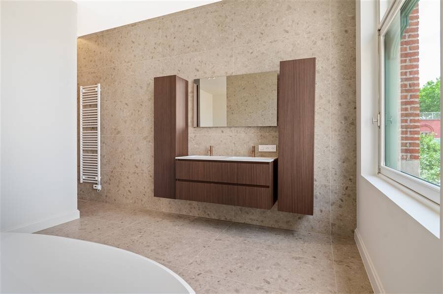 De appartementen zijn afgewerkt met hoogwaardige materialen en voorzien van de nieuwste technieken, waaronder een energiezuinige warmtepomp en akoestisch geïsoleerde ramen, zodat u kunt genieten van optimaal wooncomfort in een stijlvolle setting.
