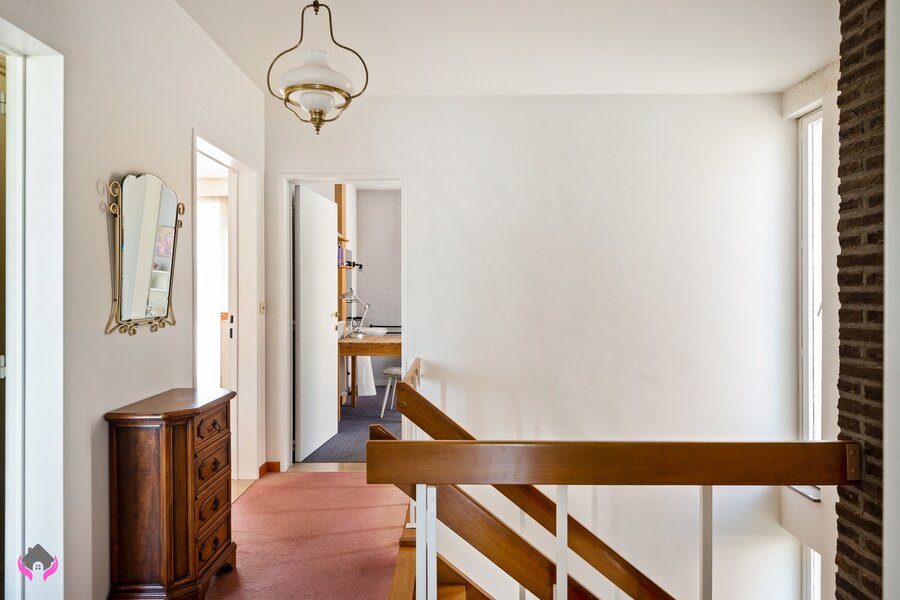 Binnen voelt u meteen dat dit een oerdegelijke woning is. De constructie is stevig, de indeling is doordacht en de aangename lichtinval op zowel het gelijkvloers als de verdieping zorgt voor een bijzonder fijne sfeer. De woning is instapklaar, maar biedt tegelijk ook nog heel wat mogelijkheden om ze verder naar eigen smaak aan te passen.