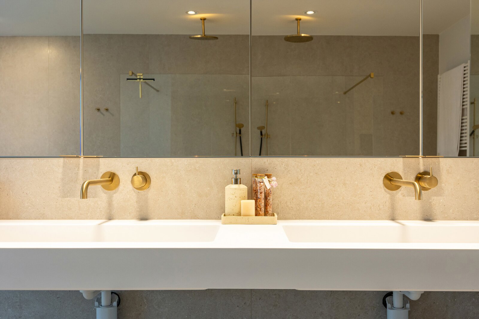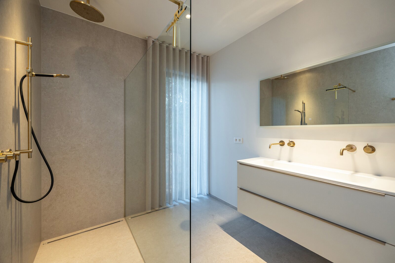 Het mastergedeelte van 100 m² met hoofdslaapkamer van 23 m² en een royale dressing van 27 m² vormen samen een ware privésuite. De aangrenzende hoofdbadkamer van 25 m² is stijlvol afgewerkt en beschikt over een ligbad, dubbele douche met “Hotbath” kraanwerk, spiegelkasten en een toilet, wat resulteert in een comfortabel en verfijnd hotelgevoel.