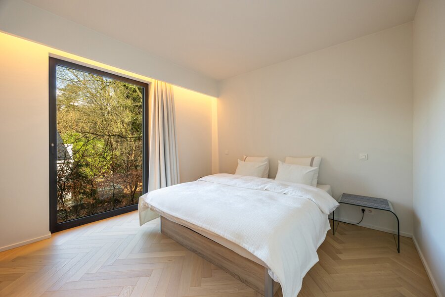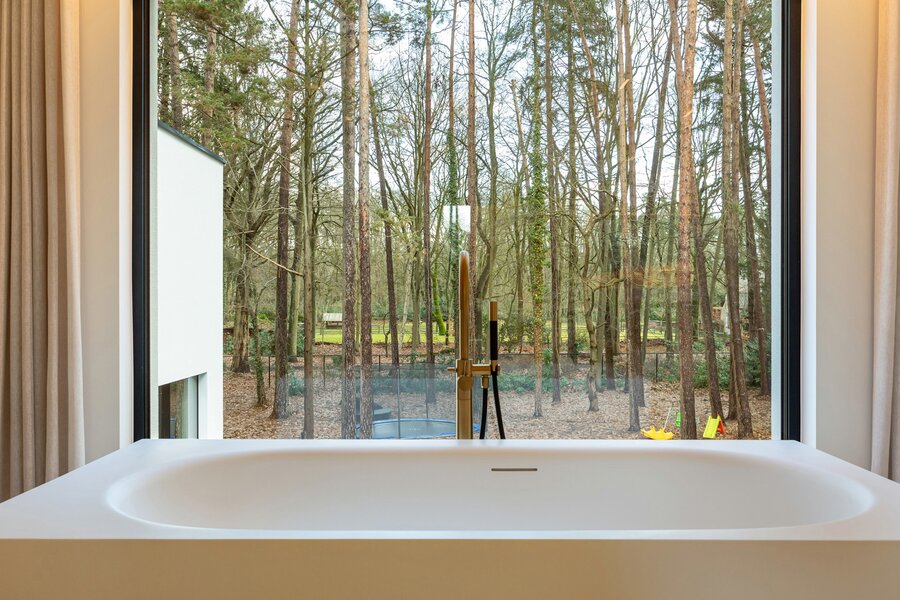 De woning werd afgewerkt met blokdeuren tot aan het plafond en op maat gemaakte gordijnen. 35 zonnepanelen in combinatie met een 20 kWh thuisbatterij, een dubbel ventilatiesysteem type D, driedubbele beglazing, aluminium schrijnwerk, een regenwaterput van 10.000 liter en een geothermische warmtepomp waarmee u de vloer kan warmen en kan koelen. Vloerverwarming is aanwezig in alle ruimtes en afzonderlijk regelbaar via digitale thermostaten. Daarnaast is de woning uitgerust met een volledig alarmsysteem, camerabewaking, waterontharder, videofoon en Niko Home Control domotica. De verlichting en dimmers van de merken “Floss” & “Prado” zorgen voor een sfeervolle verlichting doorheen de hele woning.