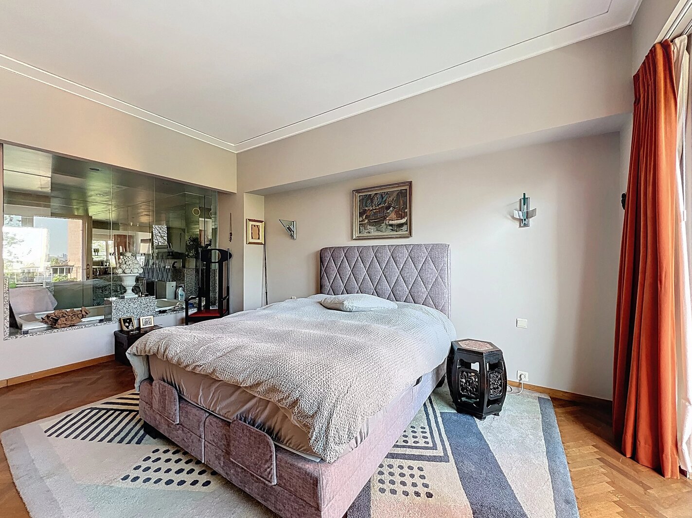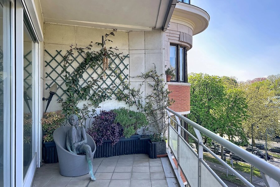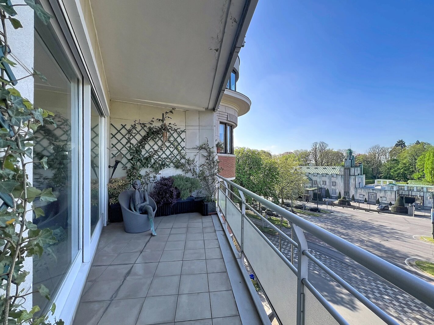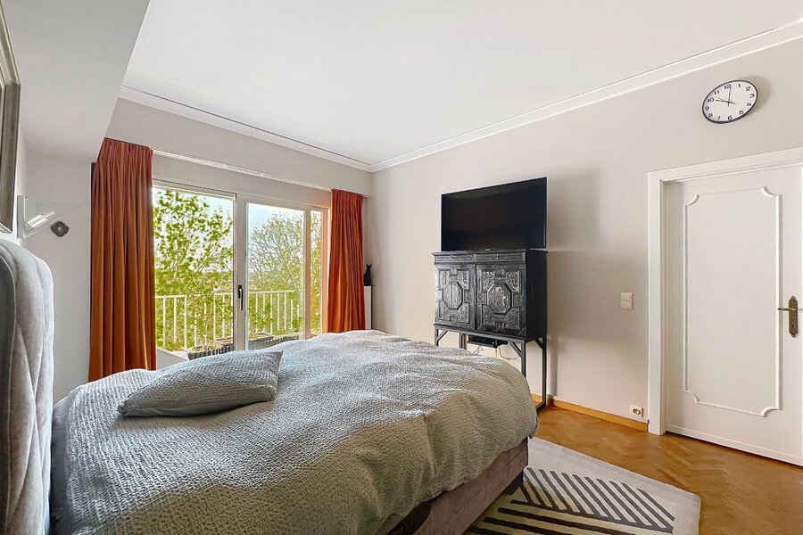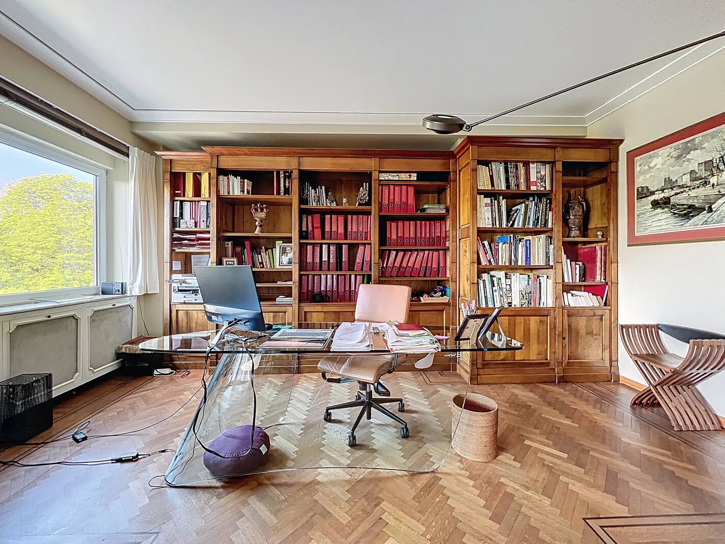 Located on the 4th floor, it is composed as follows: a large entrance hall with wardrobe and guest toilet, beautiful and spacious bright receptions with a double terrace and its sublime view of the Stoclet Palace, a large office, a kitchen with a utility room, a balcony, and a dining area (originally a bedroom), a large bedroom (merger of two bedrooms), a shower room, the master bedroom with its en-suite bathroom, a dressing room.