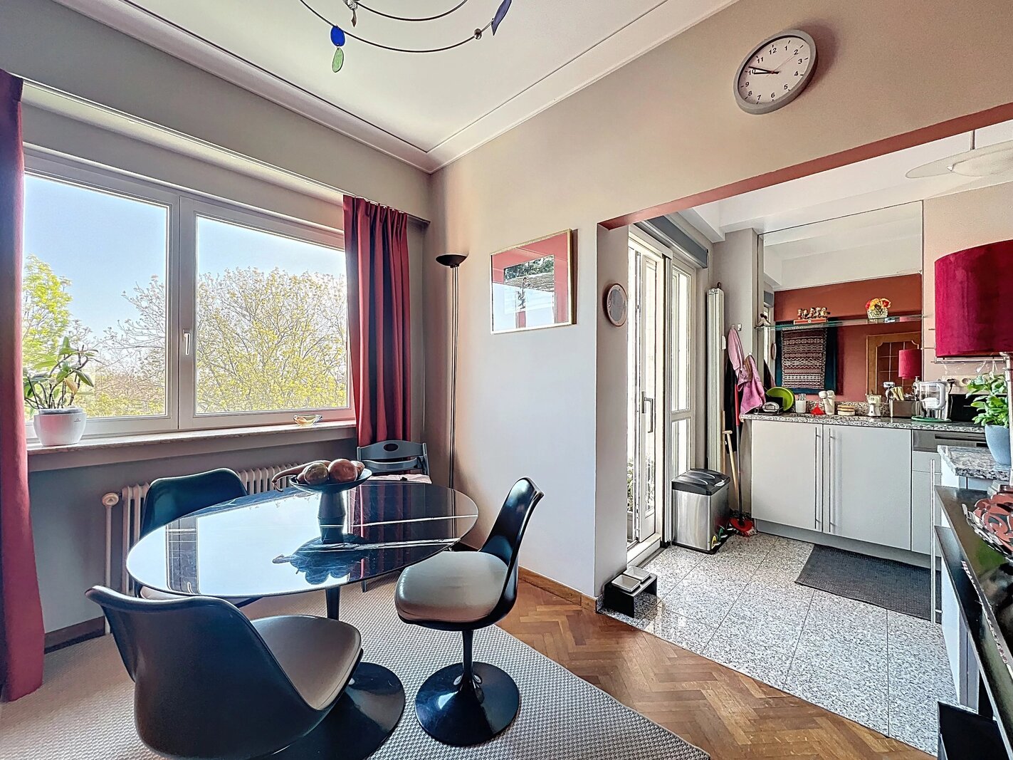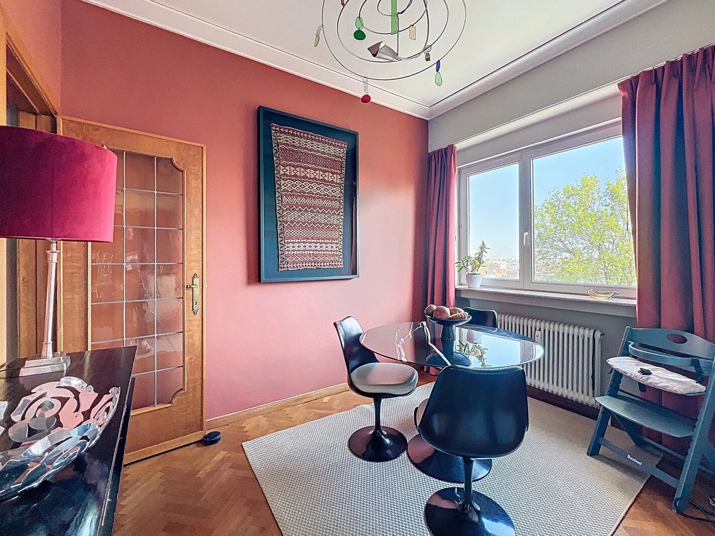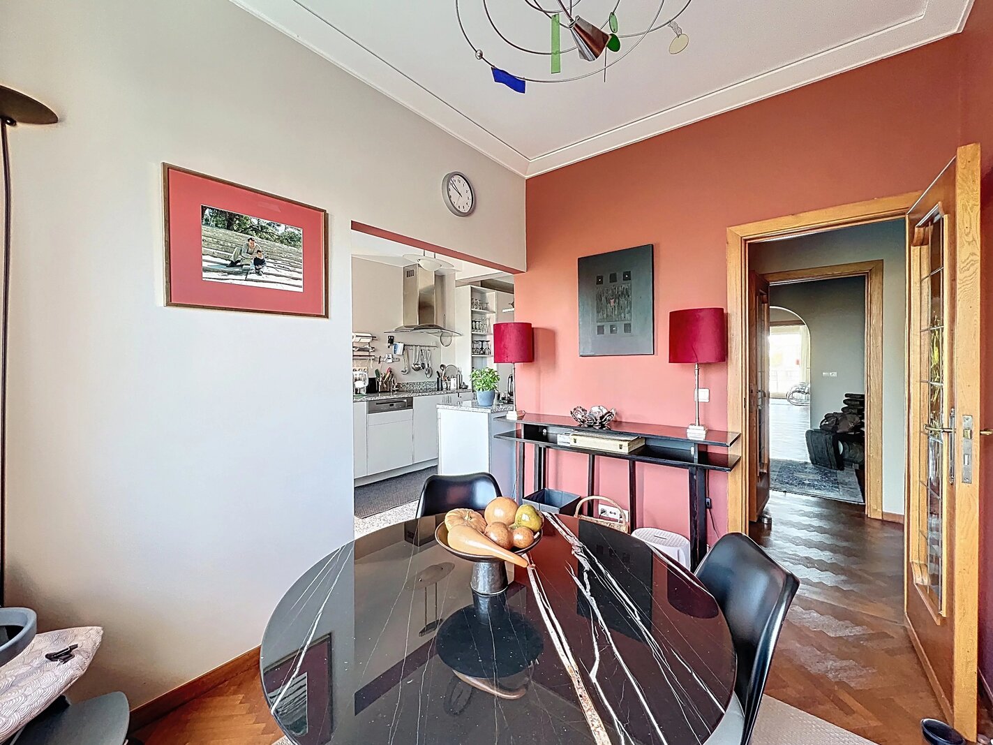 Miscellaneous: PEB D-, soundproofing on the ceiling, a large parking space mandatory at 60,000€ with an automatic door for two cars and access to a private small garden, a cellar. Possibility to reconfigure this apartment into three or four bedrooms. Roof renovated and insulated in 2022, gas boiler approximately 14 years old, compliant elevator.