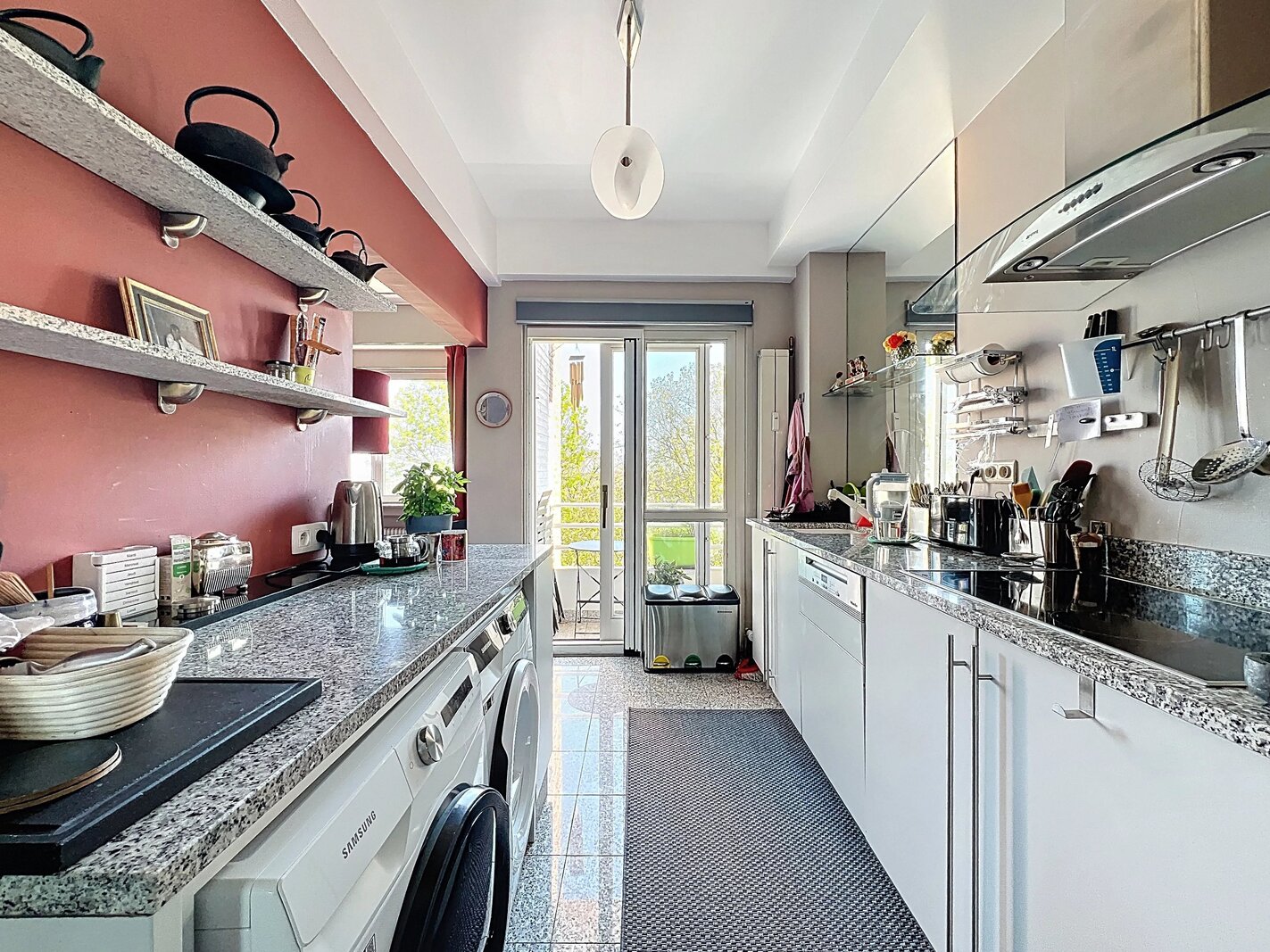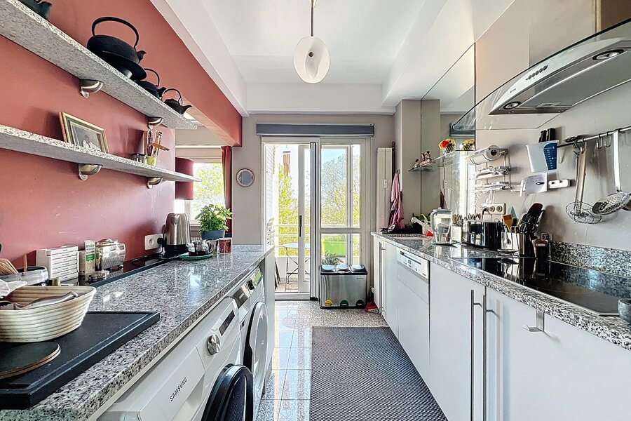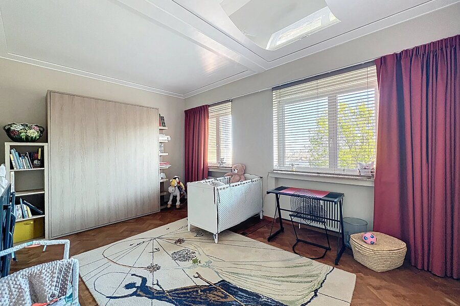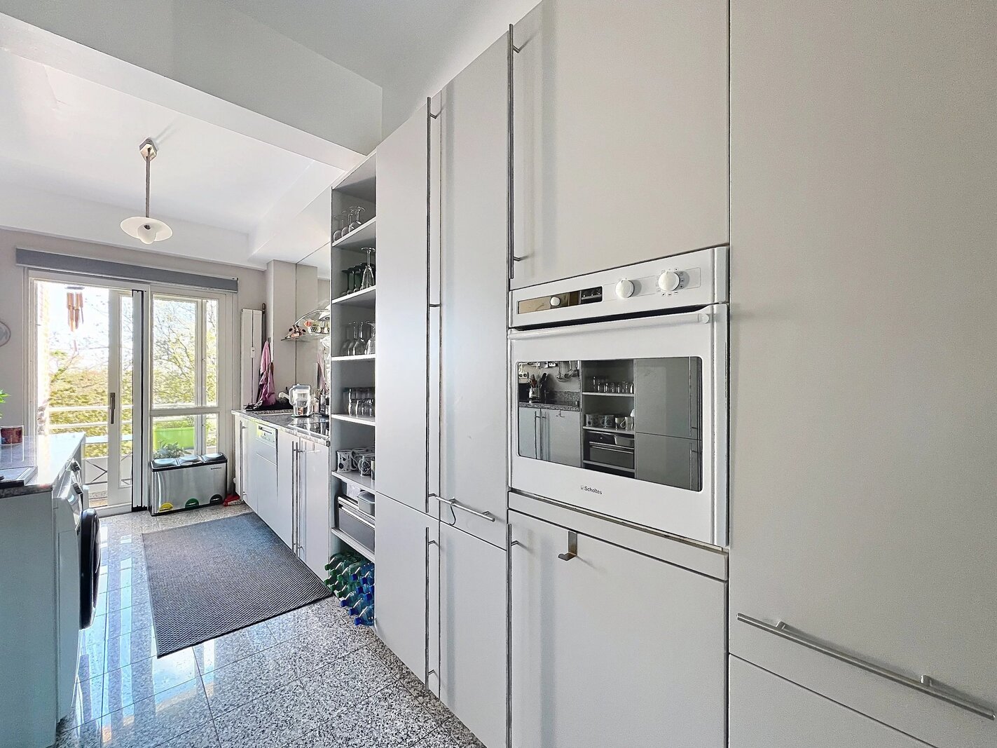 Miscellaneous: PEB D-, soundproofing on the ceiling, a large parking space mandatory at 60,000€ with an automatic door for two cars and access to a private small garden, a cellar. Possibility to reconfigure this apartment into three or four bedrooms. Roof renovated and insulated in 2022, gas boiler approximately 14 years old, compliant elevator.