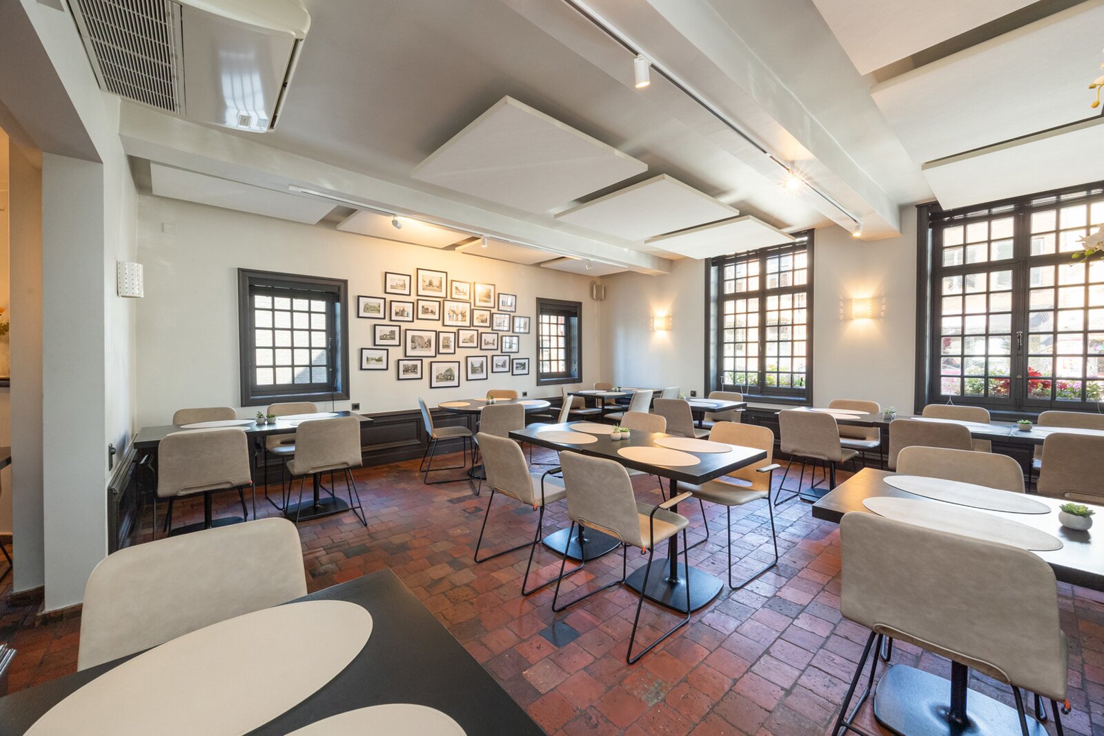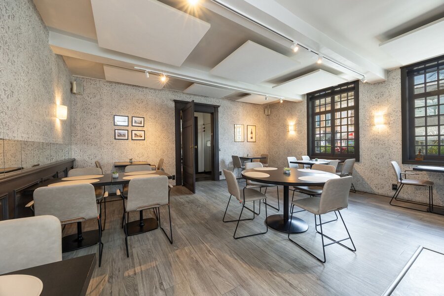Het eerste restaurantgedeelte van 33m² ademt charme uit dankzij de gezellige aankleding en de marmeren open haard. Het tweede restaurantgedeelte heef een royale oppervlakte van 90m² met indrukwekkend bar.