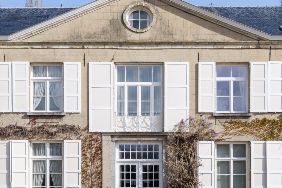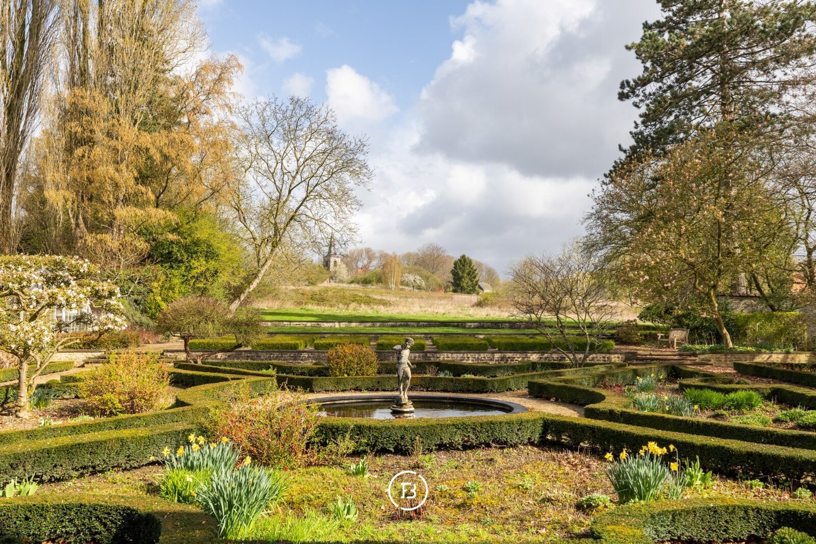 De prachtig aangelegde tuin van ca. 80 are met serre, ontworpen door landschapsarchitect René Pechère, straalt sereniteit en tijdloze schoonheid uit.