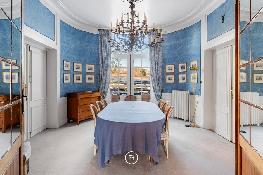 Dit prestigieuze manoir, gebouwd in 1780 naar de plannen van de gerenommeerde architect L.B. Dewez, ligt in een groene en rustige omgeving aan de poorten van Brussel. Gelegen in een discrete doodlopende straat tussen Groot-Bijgaarden en Sint-Bavo, omringd door weiden, geniet het eigendom van een uitzonderlijk en beschermd uitzicht op het charmante kerkje van Sint-Bavo. Brussel en Gent zijn vlot bereikbaar. De woning baadt in natuurlijk licht en ademt rust en elegantie.