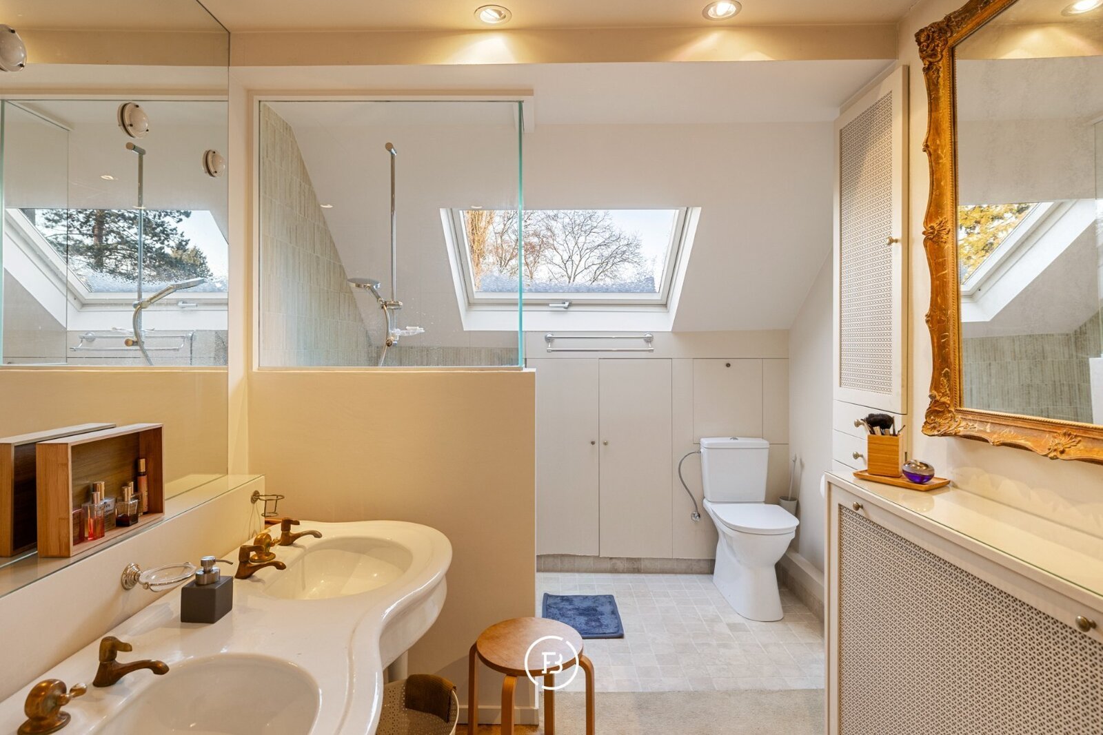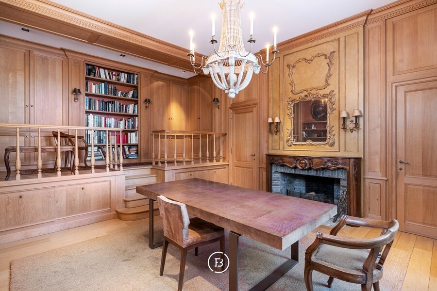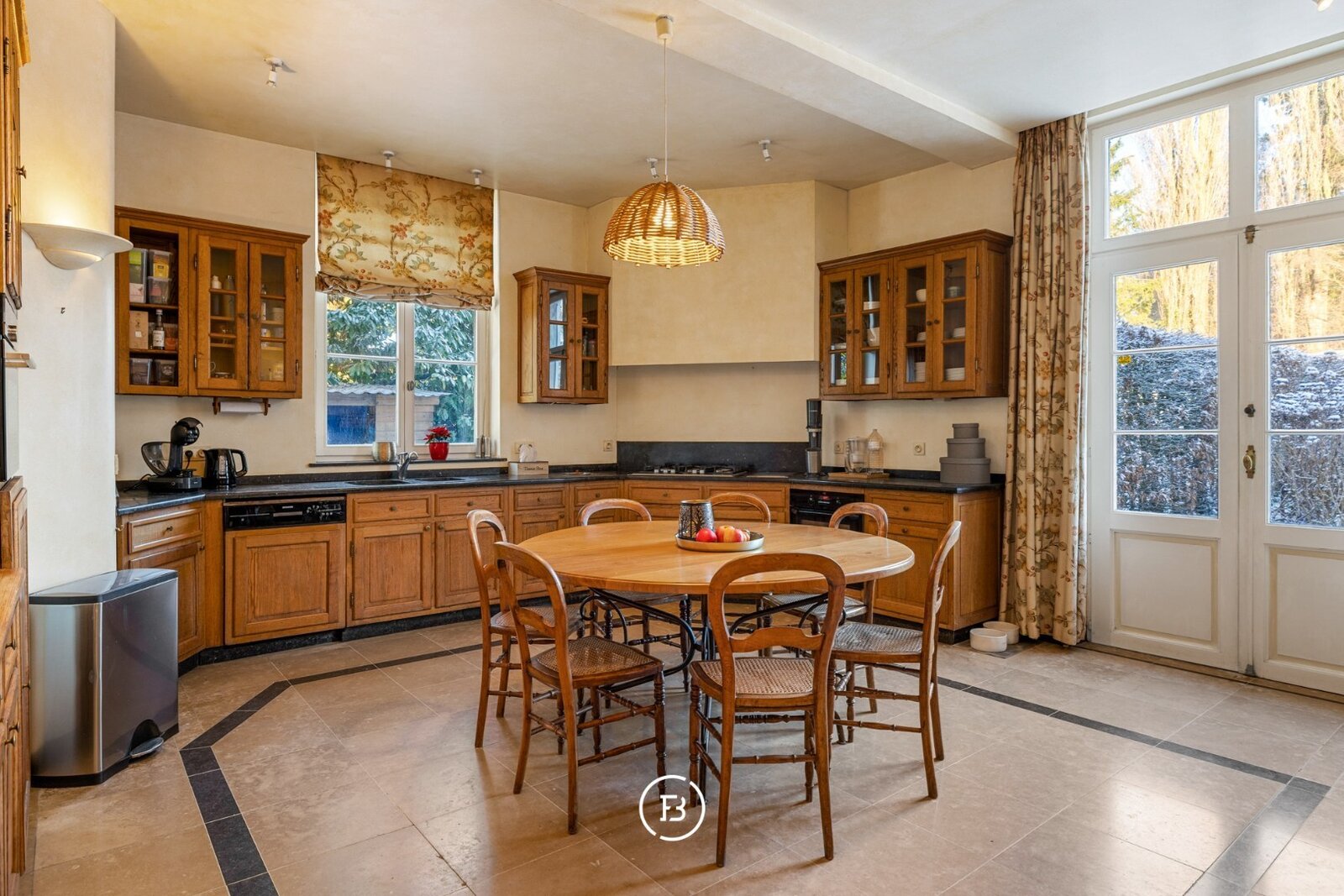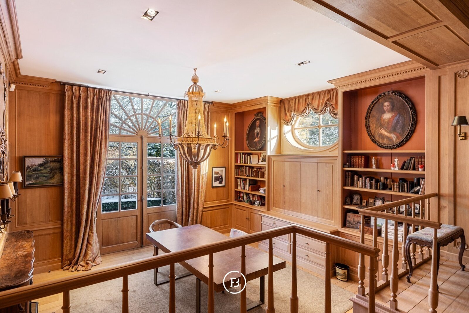 Via een elegante centrale inkomhal bereikt men de leefruimtes op het gelijkvloers: salon, bureau en eetkamer met open haard, tv-salon, ruime leefkeuken, wasruimte, garage en inpandig poolhouse. Op de verdieping bevinden zich een master suite, meerdere slaapkamers met badkamers, bijkomende kamers en een zolder. Verfijnd maatwerk vervolledigt het geheel.