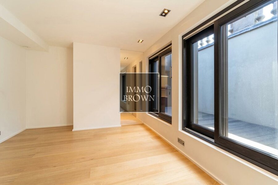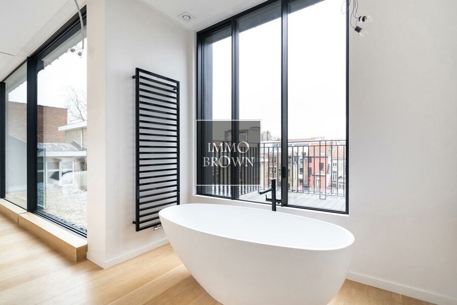 Behind the magnificent facade of a former mansion house, extraordinary penthouse for sale with a total surface area of 385sqm, completely renovated and offering top-of-the-range finishes, just a few steps from the Avenue Louise,