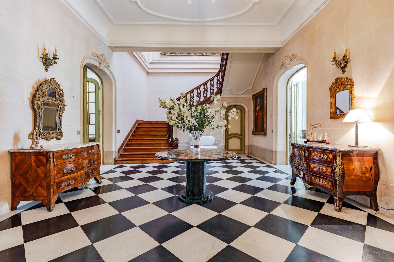 Extra kenmerken: lift, dubbele beglazing, alarm, oliegestookte verwarming, waterontharder, wasruimte, kelders, wijnkelder, fitnessruimte, en een achterhuis met garages en conciërgewoning.