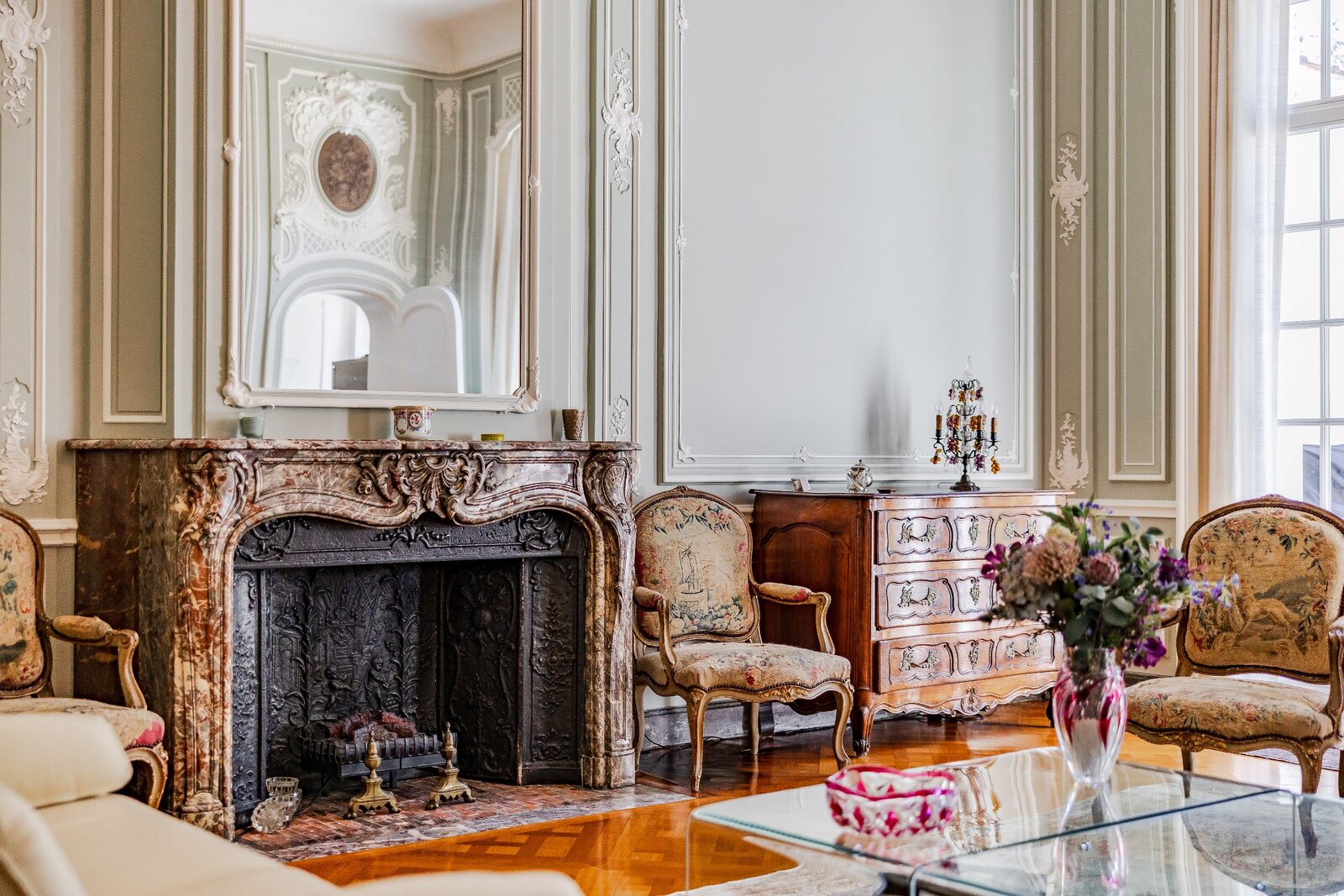 De eerste verdieping herbergt een receptie-eetkamer, een grote keuken met aangrenzende eetkamer, en een met zijde versierde salon. Een tweede trap leidt naar de tweede verdieping met de master suite en een extra slaapkamer.
