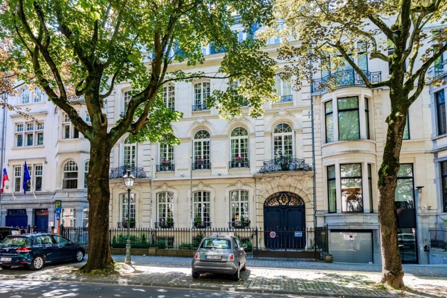 Vlakbij het Brugmannplein, achter een elegante gevel van ±15 meter, was dit herenhuis jarenlang een ambassadeurswoning. De begane grond biedt een grote hal met een eretrap, een bibliotheek met origineel houtwerk, een verfijnde woonkamer met uitzicht op de tuin, en een intieme salon.