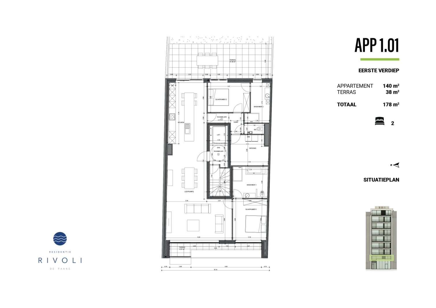 Op deze unieke topligging realiseren bouwheren samen met architect een weldoordacht nieuwbouwproject bestaande uit 13 appartementen en één handelsgelijkvloers. Ieder appartement beschikt over een ruim leefterras zowel aan voorzijde (Zeelaan) als achteraan. In Residentie Rivoli speelt de architectuur met kleur en duurzame materialen waardoor de uitstraling perfect past in het straatbeeld en er tegelijk een tijdloze uitstraling wordt gecreëerd.