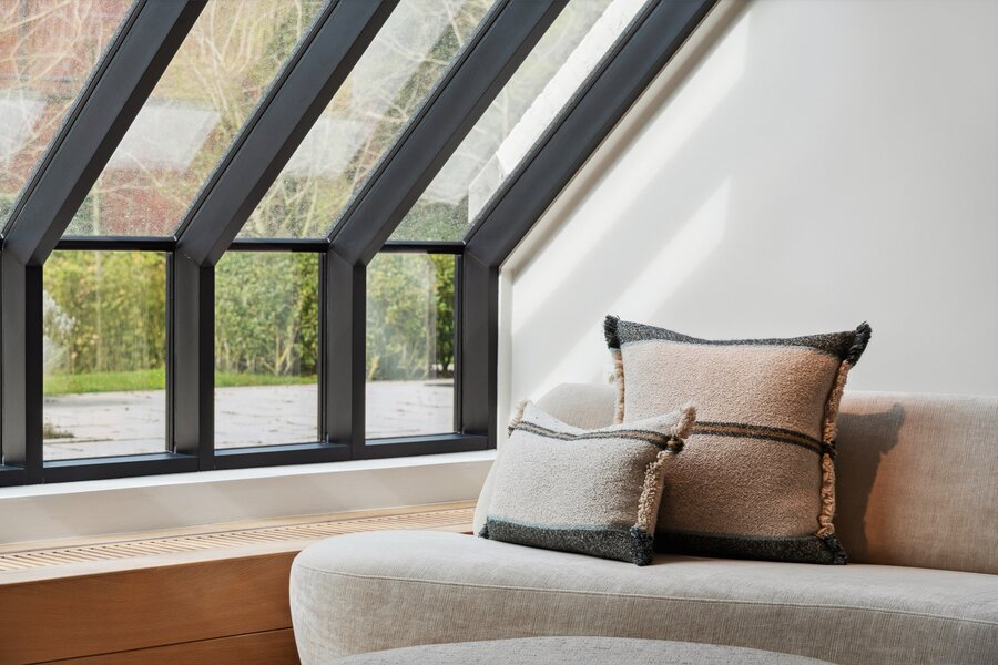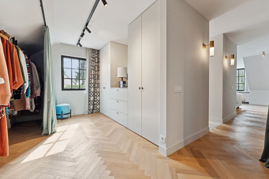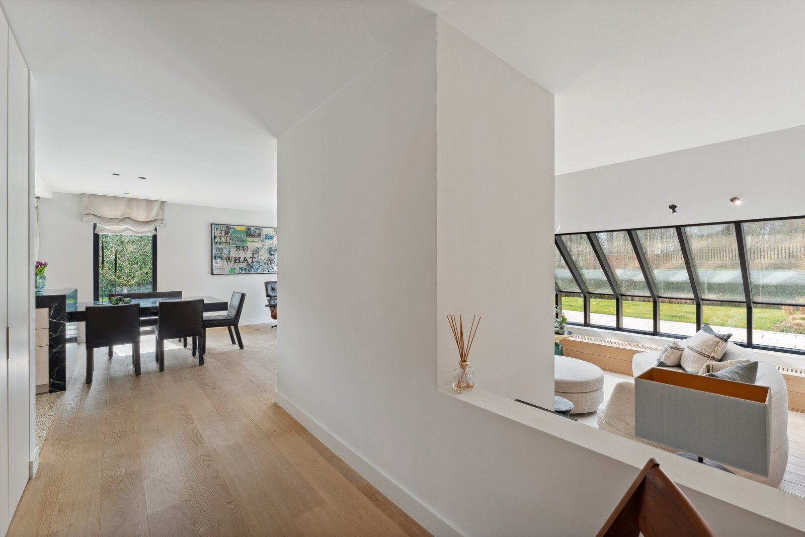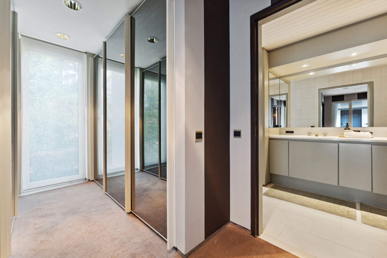 De trap die subtiel is verscholen in de inkomhal brengt u tot de bovenverdieping.