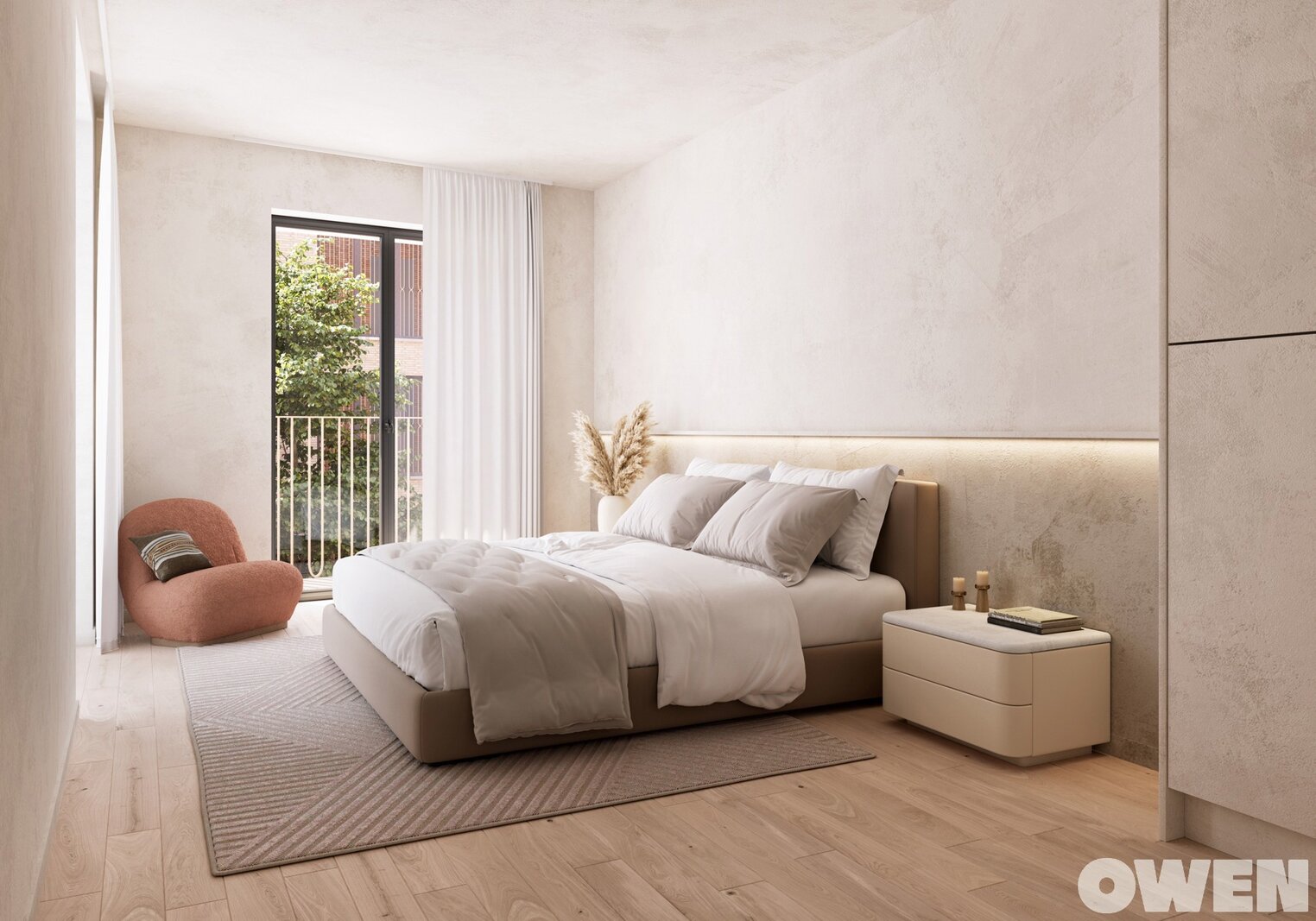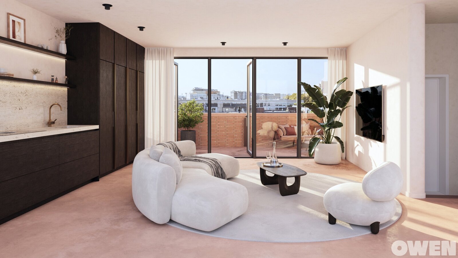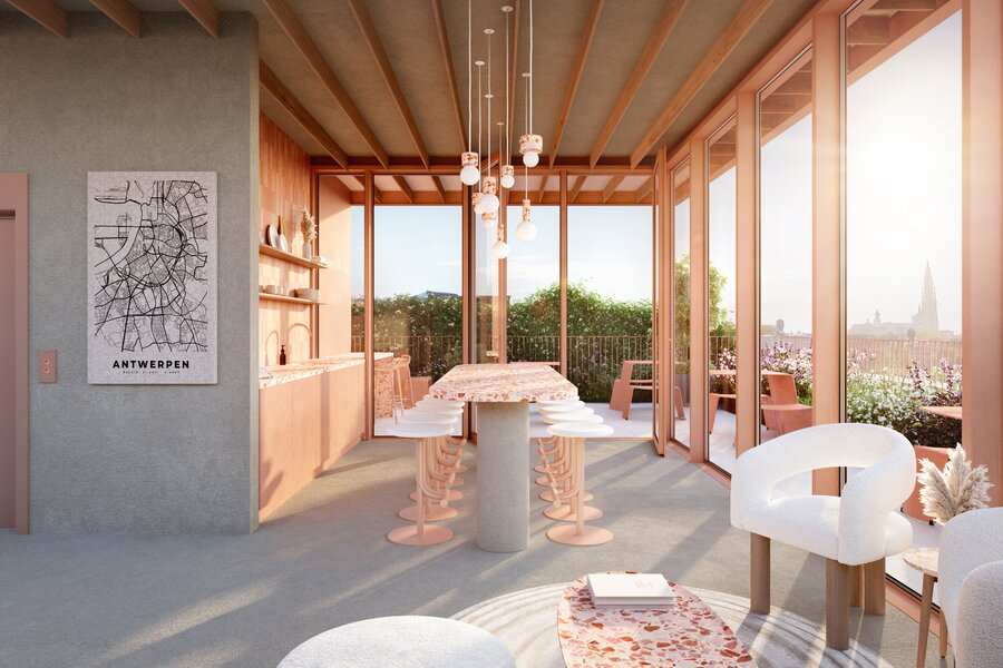 The apartments range from 49 to as much as 151 m² and offer a mix of one, two and three bedrooms. Each apartment is carefully designed and finished to a high standard, with generous terraces of up to 43 m² and/or private gardens of up to 20 m², ensuring maximum privacy and an exceptional living experience. In addition, communal roof gardens and terraces create a unique dynamic and offer breathtaking views of the city. The residence is designed with a focus on energy efficiency.