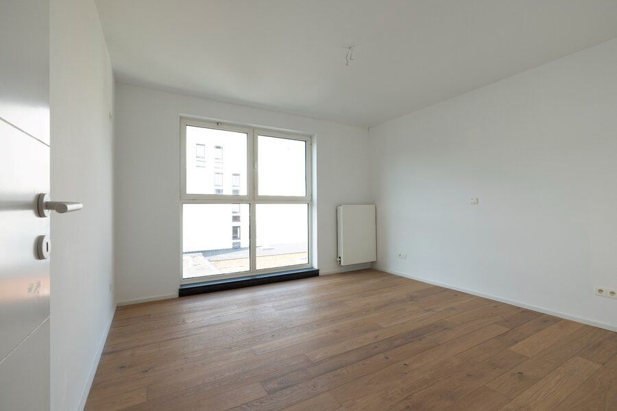 Via de lift betreedt je onmiddellijk het woongedeelte. De absolute eyecatcher in de leefruimte zijn het hoge plafond en de grote raampartijen die je een waanzinnig zicht geven op de haven. Gordijnen zijn voorzien en kan je automatisch bedienen. De woonkamer wordt via een halfhoge wand in 2 gedeeld. Aan de ene kant kan je gezellig vertoeven aan de gashaard. Aan de andere kant kan je een TV-hoek creëren. Vanuit de leefruimte heb je toegang naar het terras vooraan en het grootste terras achteraan. Aansluitend bevindt zich de keuken met kookeiland en tevens toegang naar een terras. De keuken werd voorzien van alle toestellen (vaatwasser, inductievuur, combi-oven, grote koelkast en diepvriezer). Naast de keuken is een ruime berging met aansluiting voor wasmachine en droogkast. Op deze verdieping bevindt zich ook nog een volledig omheind terras waar je in alle privacy kan vertoeven, een gastentoilet, een bureau en nog een ruimte die kan dienen als bv fitnesskamer.
