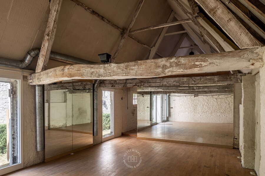 De hoeve straalt de ziel van vroeger uit, met een prachtige, tijdloze voorgevel en een interieur waarin tal van originele elementen behouden zijn gebleven. Naast de woning bevindt zich een indrukwekkende schuur met hoge nok en zolderverdieping, boordevol potentieel. Denk aan een atelier, feestzaal, gastverblijf, opslagruimte of zelfs een combinatie ervan – de mogelijkheden zijn eindeloos.