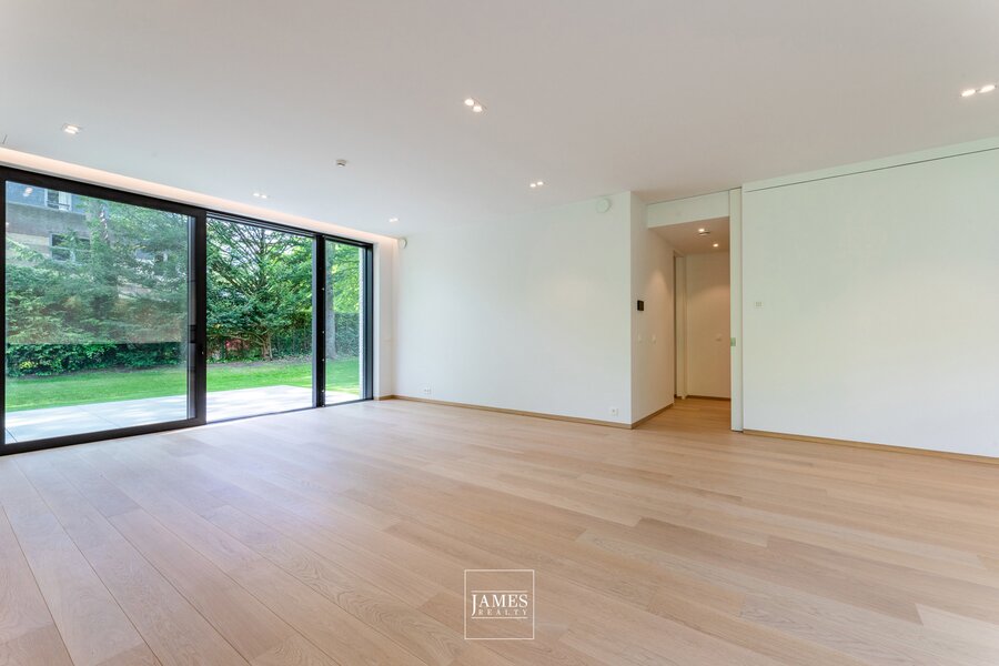 In the Prince d'Orange district on the delightful Place Sainte Alliance, in a small new luxury building, magnificent ground floor of 170m2 with a beautiful garden of +/- 700m2 offering a vast living room of 60m2 and a fully equipped open-plan kitchen. At night, there is a master bedroom with dressing room and en-suite bathroom; two bedrooms, each with en-suite shower room and dressing room. Two optional parking spaces. Sale subject to VAT.