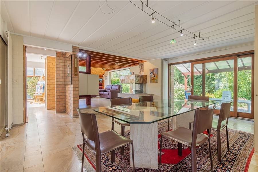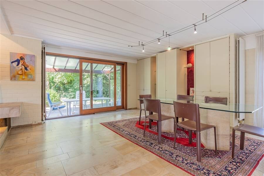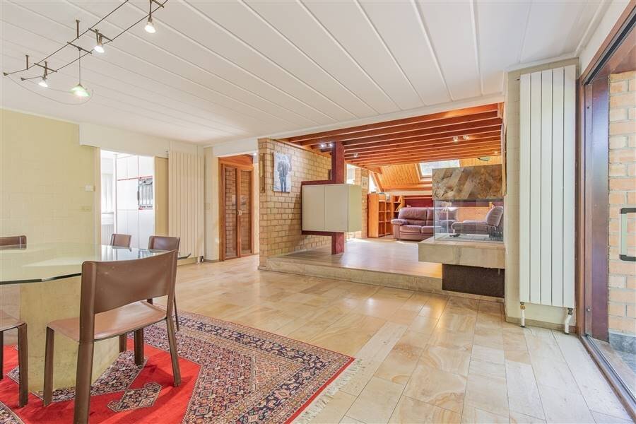 Op de eerste verdieping bevinden zich een comfortabele keuken, een open eet- en leefruimte met veel natuurlijke lichtinval, een open haard en verborgen bar en een lichtrijke bureauruimte in de wintertuin.