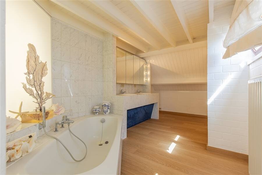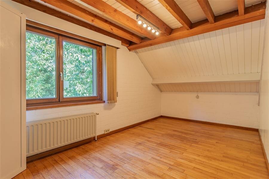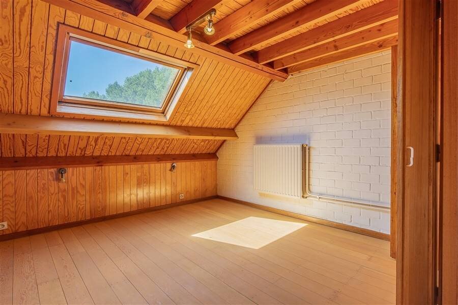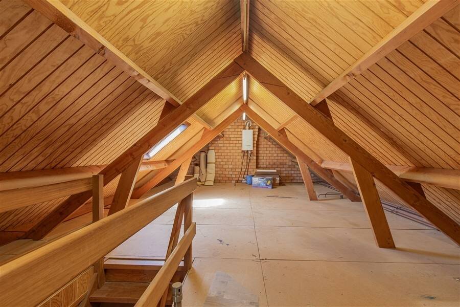 De ruime zolder is bereikbaar via een vaste trap en biedt nog tal van mogelijkheden maar werd tot op heden gebruikt als opslagruimte.