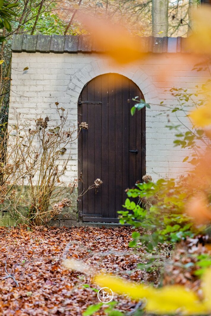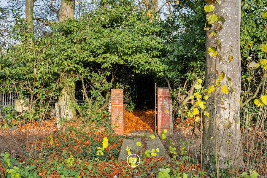 Het perceel wordt aan de achterkant geflankeerd door een prachtige wandeldreef, bereikbaar via een achterpoort en een brugje over de beek.