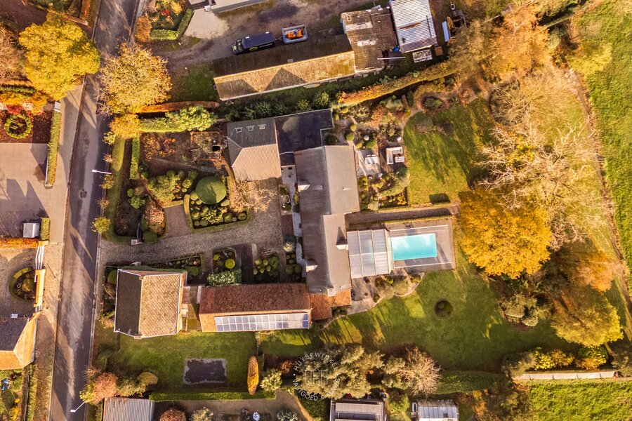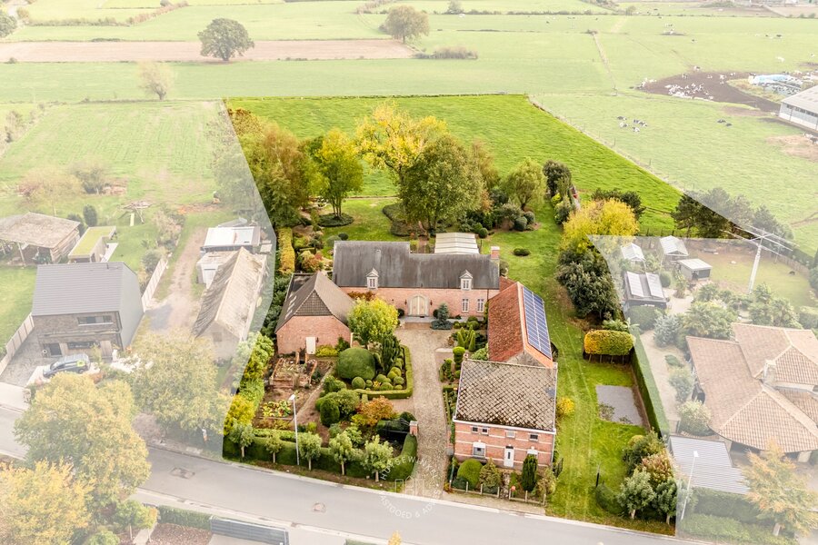 Het geheel rust op een uitzonderlijk perceel van bijna 13.000 m², inclusief een achterliggende weide — ideaal voor dierenliefhebbers of wie houdt van ruimte en privacy. Bovendien behoren een grote schuur en twee vooraan gelegen bouwgronden met af te breken woning tot de eigendom.