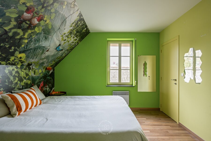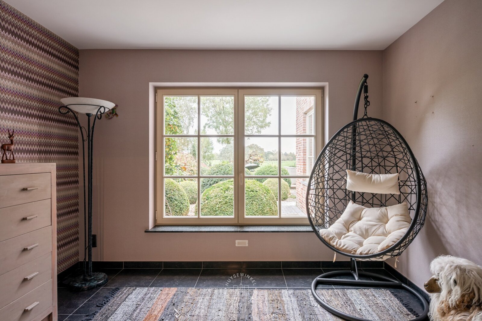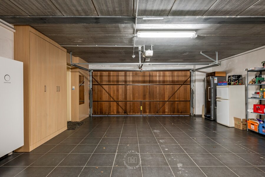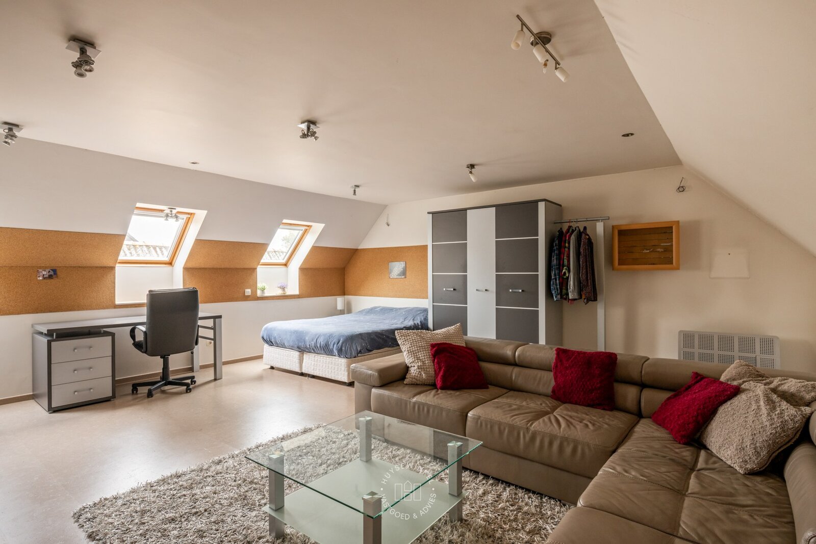 Zowel via de keuken, alsook via een aparte zij-ingang, bereikt u een aparte bureauruimte en een leeskamer — ideaal voor wie rustig wil werken of genieten van een goed boek. Verder is er een praktische berging en toegang tot de dubbele garage. Boven deze garage werd een volwaardige slaapkamer ingericht, ideaal voor gasten of het oudste kind des huizes.