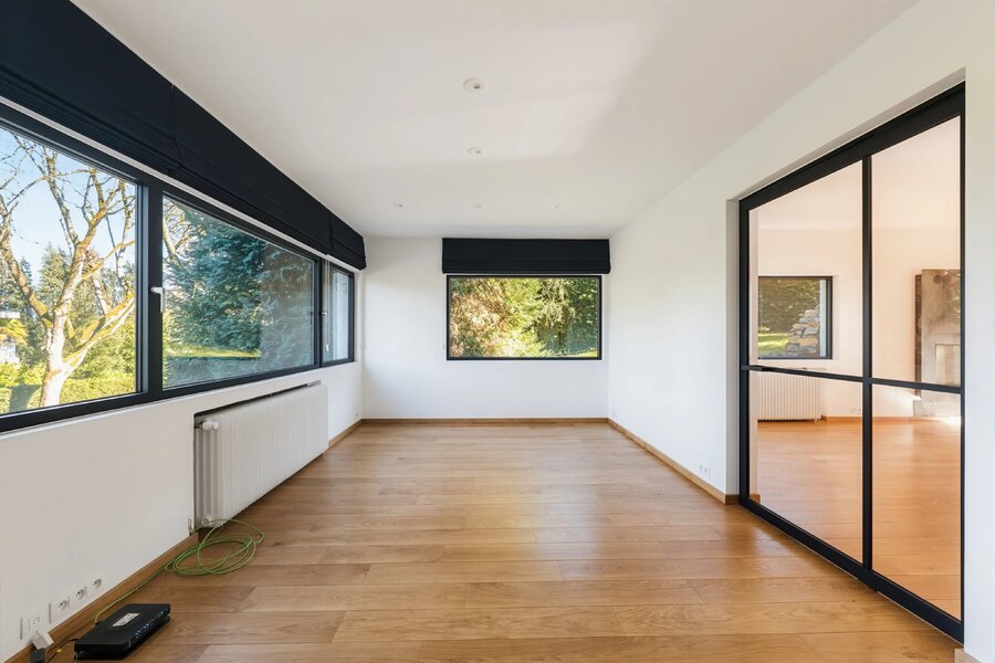 In the prestigious Prince d'Orange district, magnificent 4-façade villa with a total gross floor area of ± 300 m² and a south-facing garden on a plot of ± 7.8 ares. It is composed as follows: First floor: entrance hall, checkroom, garage, utility room, wine cellar, wash-hand basin and WC. 1st floor: hall, fitted kitchen, living room, laundry room with WC. 2nd floor: night hall, separate toilet, shower room, master bedroom with en-suite bathroom (toilet), three further bedrooms. Attic: bedroom/study area and bathroom. Also: double glazing, gas condensing boiler (2021), solar panels, rainwater tank (connected for garden watering), functional fireplace, water softener. PEB D. Don't delay!