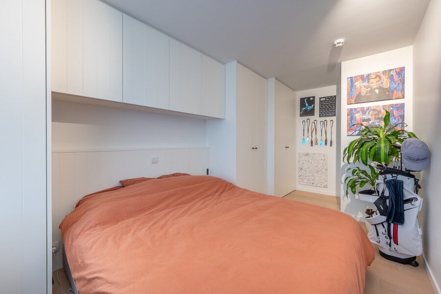 De mezzanine versterkt het open en luchtige karakter van het appartement. Hier vindt u een bureauruimte en een extra zithoek, samen met een ruime slaapkamer met dressing en badkamer, aangevuld met twee extra slaapkamers die een gedeelde doucheruimte delen.