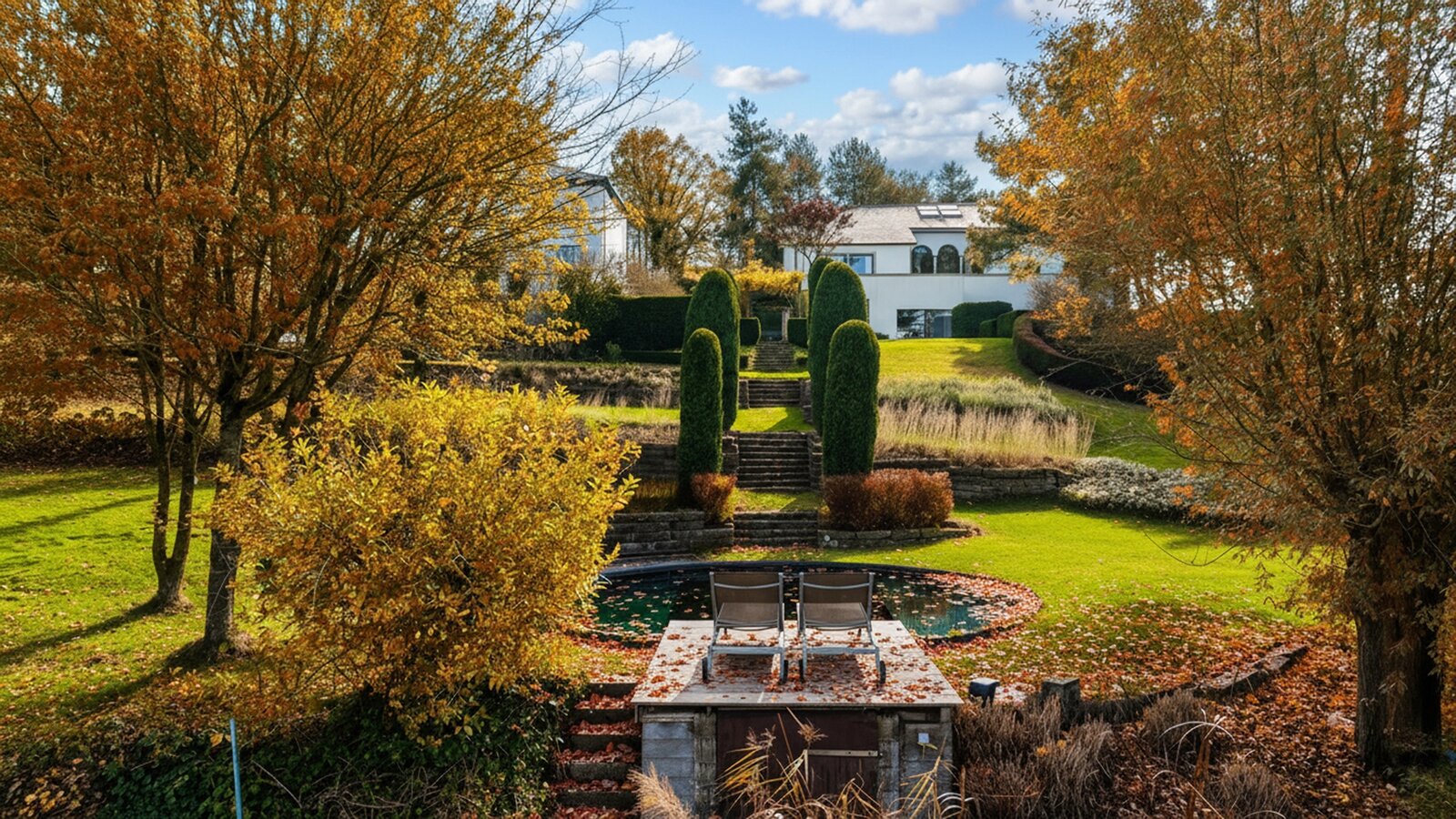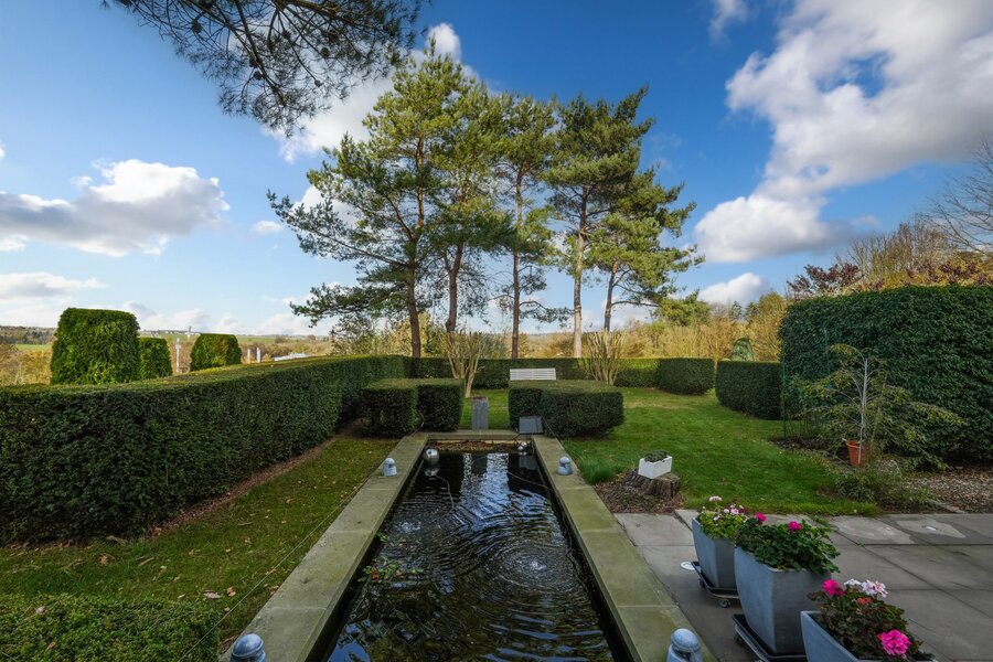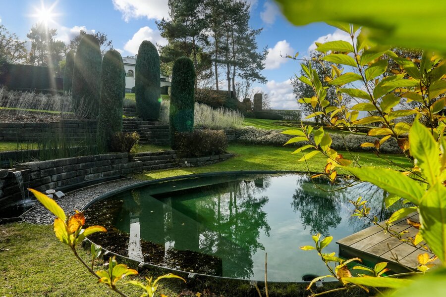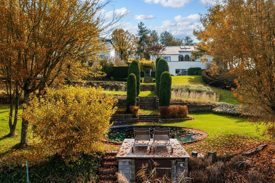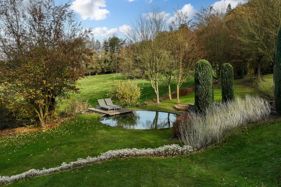 Set in beautifully landscaped grounds, it offers a unique living environment where serenity reigns: a sparkling swimming pool, a koi pond, walking paths and several terraces — including one covered terrace — allowing you to enjoy different views of nature throughout the day and across the seasons.
