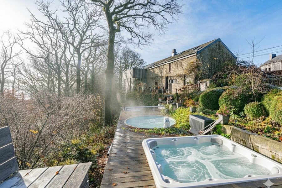 Buiten kunt u genieten van een prachtig zwembad, een jacuzzi en een ideale omgeving om te ontspannen op zonnige dagen.