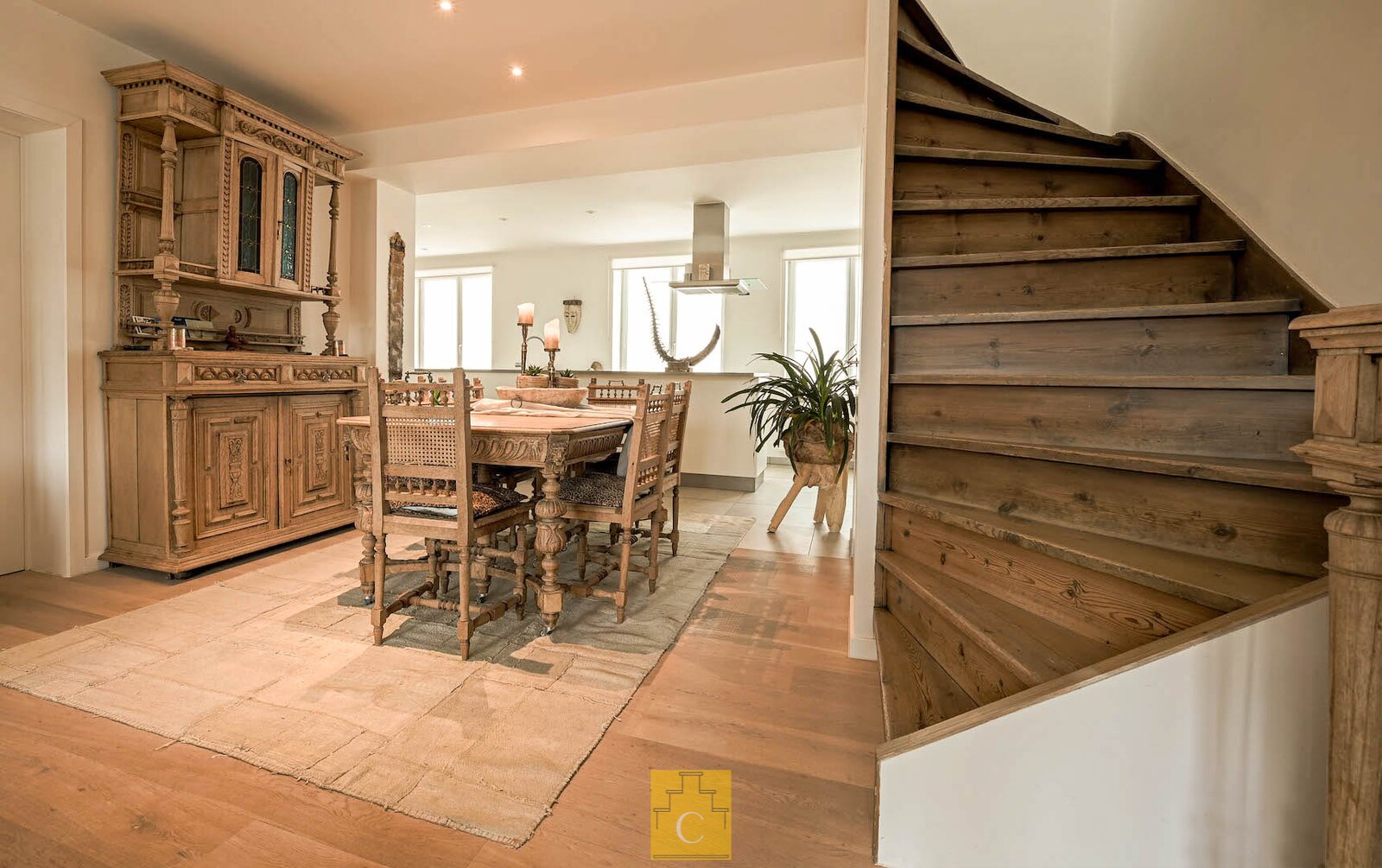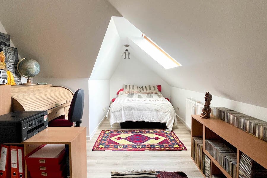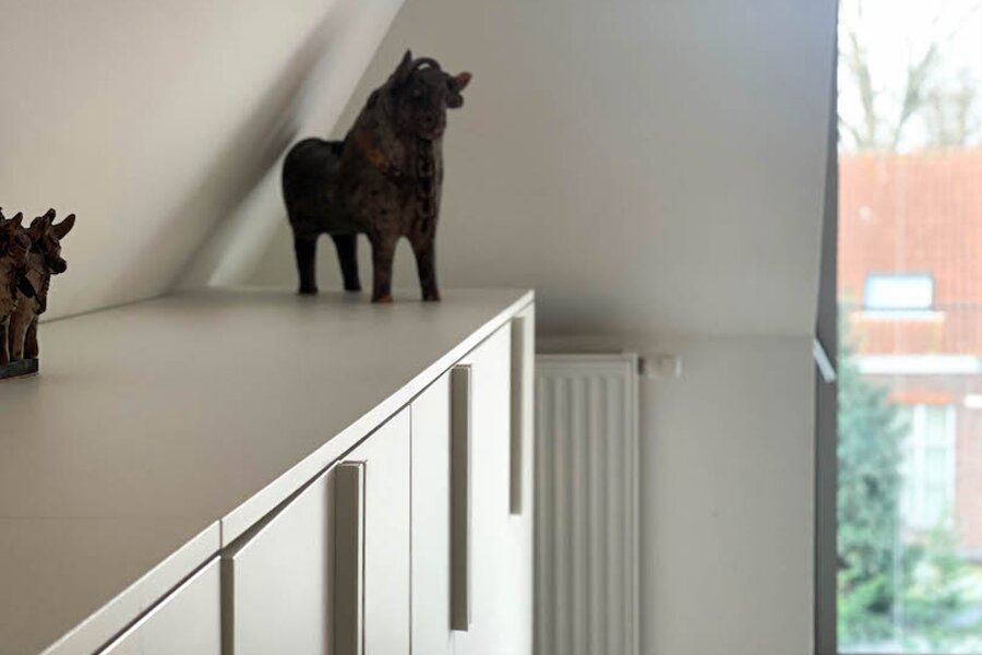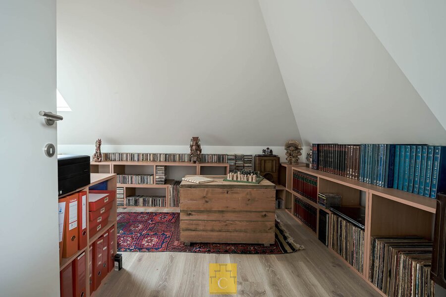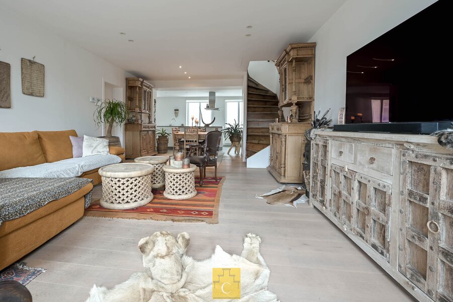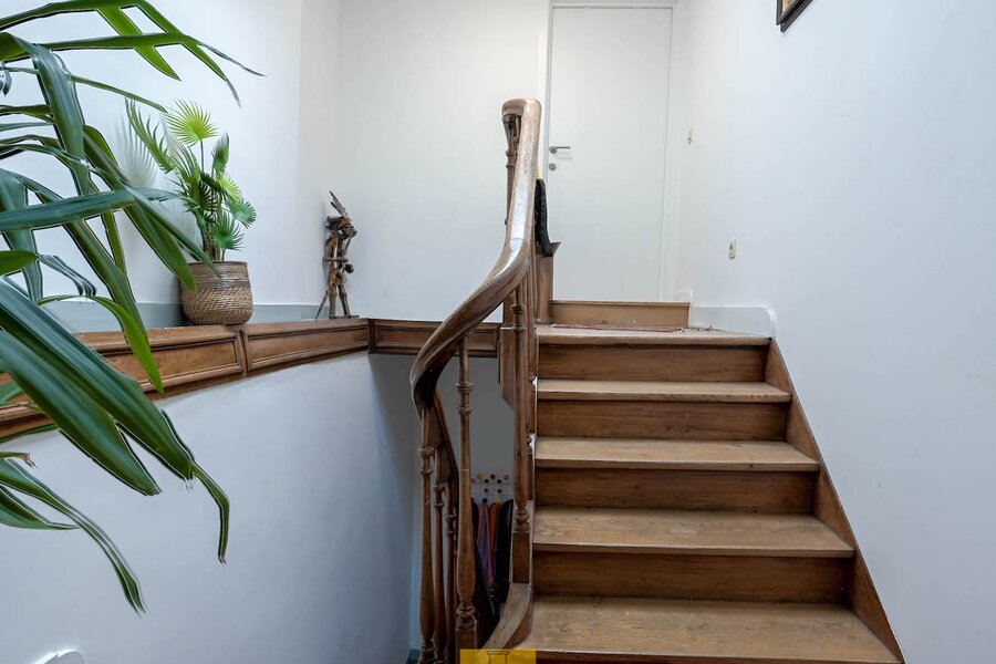 De indeling : inkom met toilet, mooie living in parket met karaktertrap naar het verdiep, zeer goed uitgeruste open keuken met kook- en werkeiland, veel kasten en schuiven en alle toestellen (Bosch), mega tof zonneterras, een kleine berging onder de trap en, aansluitend bij de keuken een ruime wasplaats/technische ruimte. Op het verdiep : nachthal, 2 ruime slaapkamers (met oa raam tot op de grond, 1 kamer met bureauhoek), mooie badkamer met lavabomeubel, inloopdouche en hangtoilet. CV gas (condensketel). Airco met warmtepomp. EPC B-label. Prijs/kwaliteit een absolute topper.