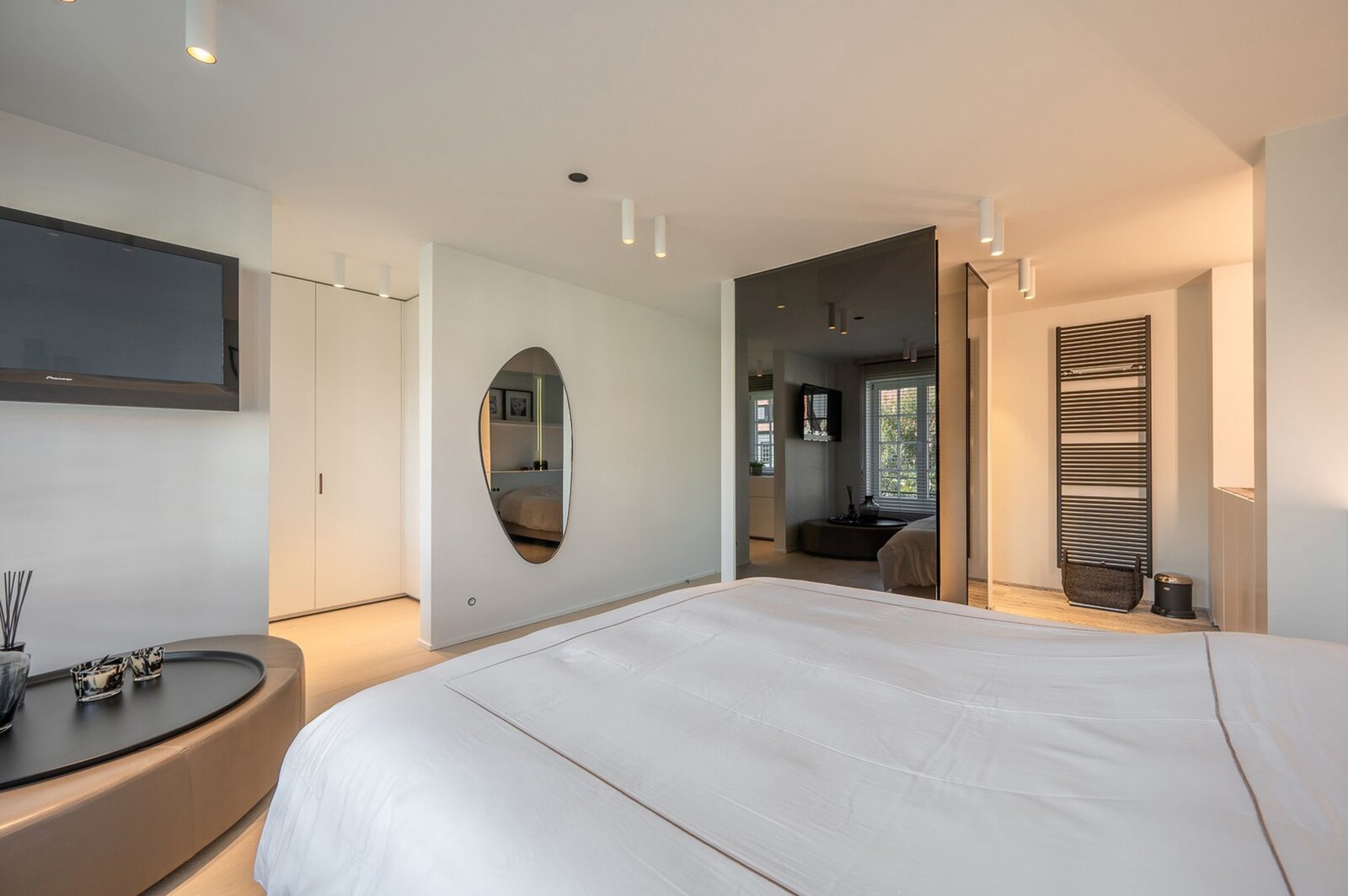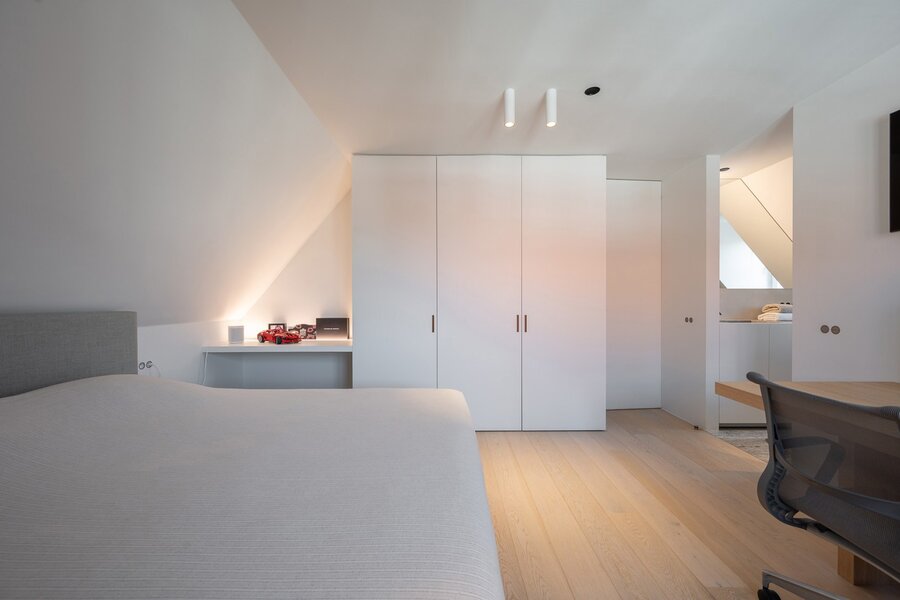 Second floor: fourth spacious bedroom with adjoining shower room including shower, toilet and washbasin. Laundry room and office. Practical storage room and technical room. Garage and parking space in front of the house.