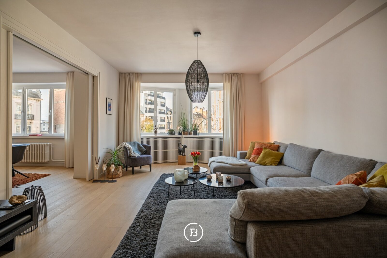 Indeling: ruime inkomhal met vestiaire, gastentoilet en een afzonderlijke berging. De lichtrijke leefruimte sluit naadloos aan op de eetplaats en een ruime bureauhoek. Dankzij een schuifdeur kunnen de leefruimte en eetplaats desgewenst volledig van elkaar worden gescheiden.
